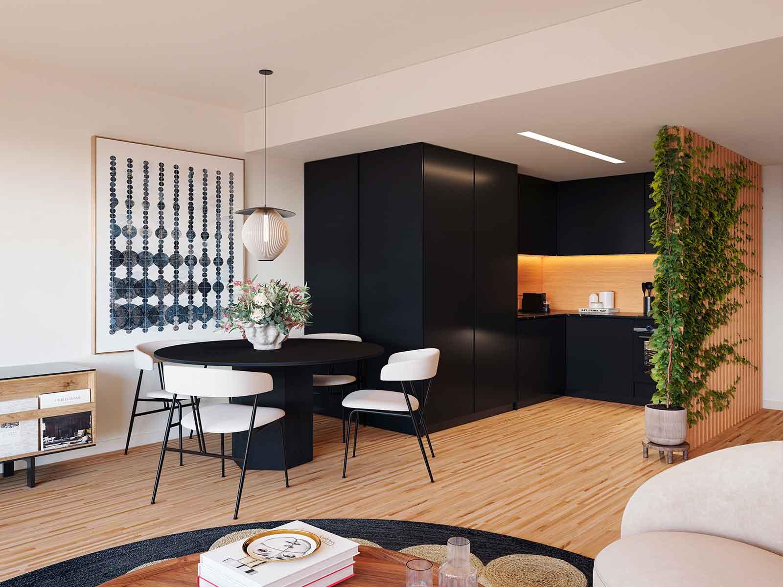 1 to 4 bedroom apartments with large balconies, storage, parking spaces with pre-installation of electric charging and parking for bicycles. The floorplans have flexible layouts.