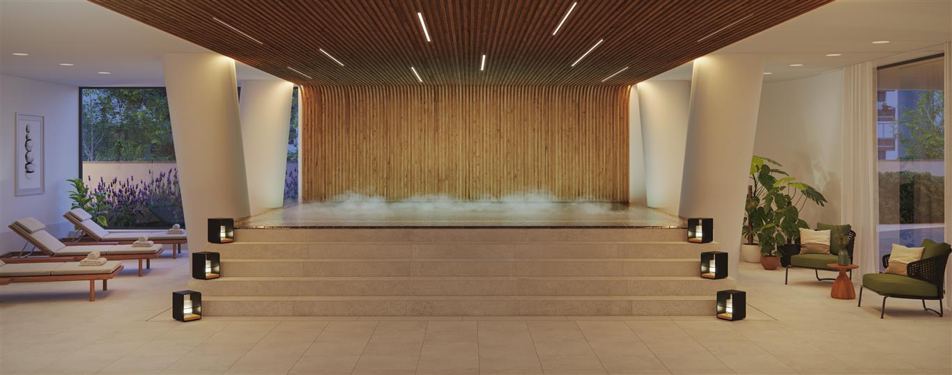 Campo Novo has its own sustainable ecosystem, with a playground, shops, cafes, restaurants, and offices. It features various amenities, including an indoor pool, rooftop, parking with electric vehicle charging, and a gym.