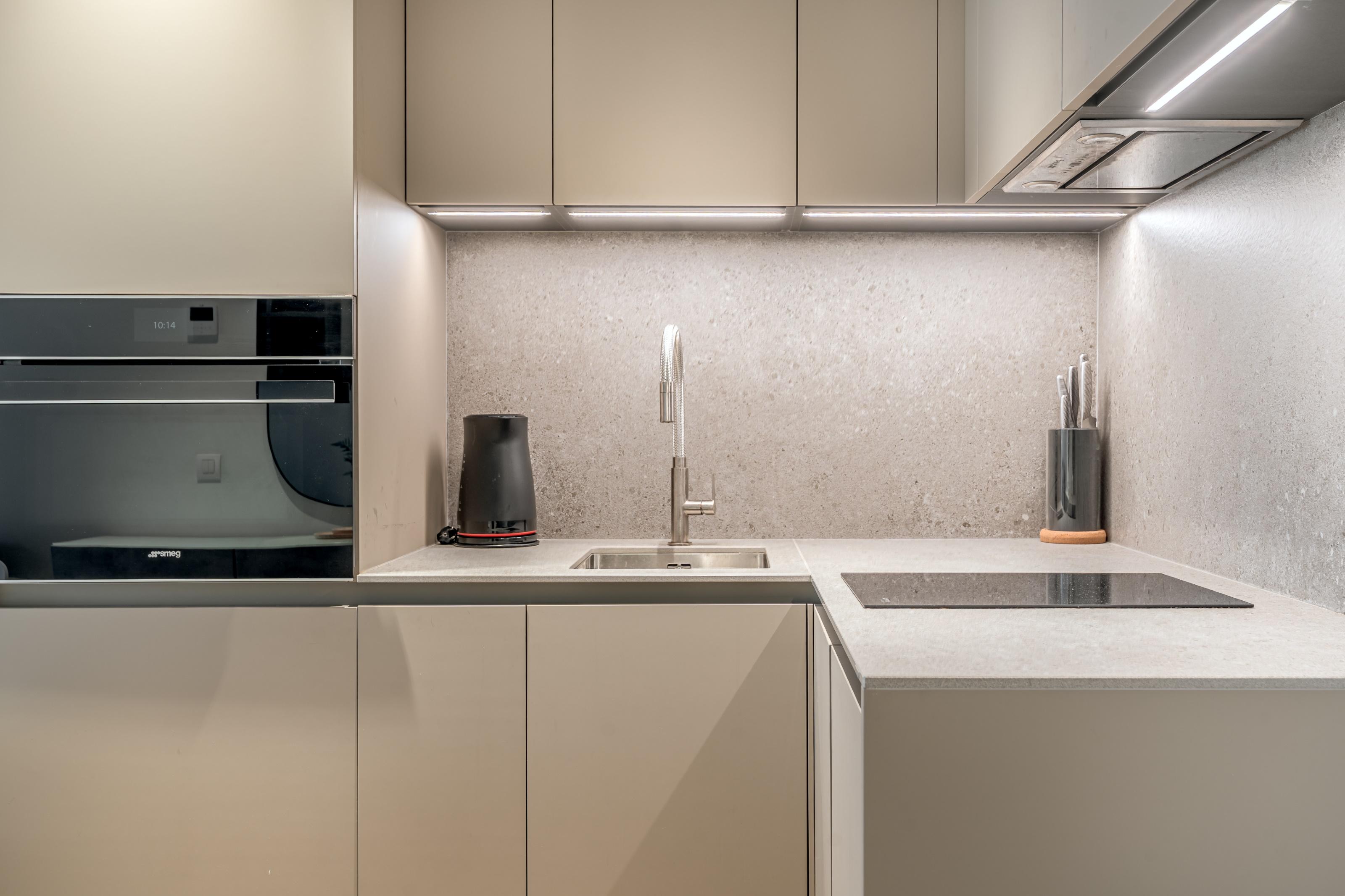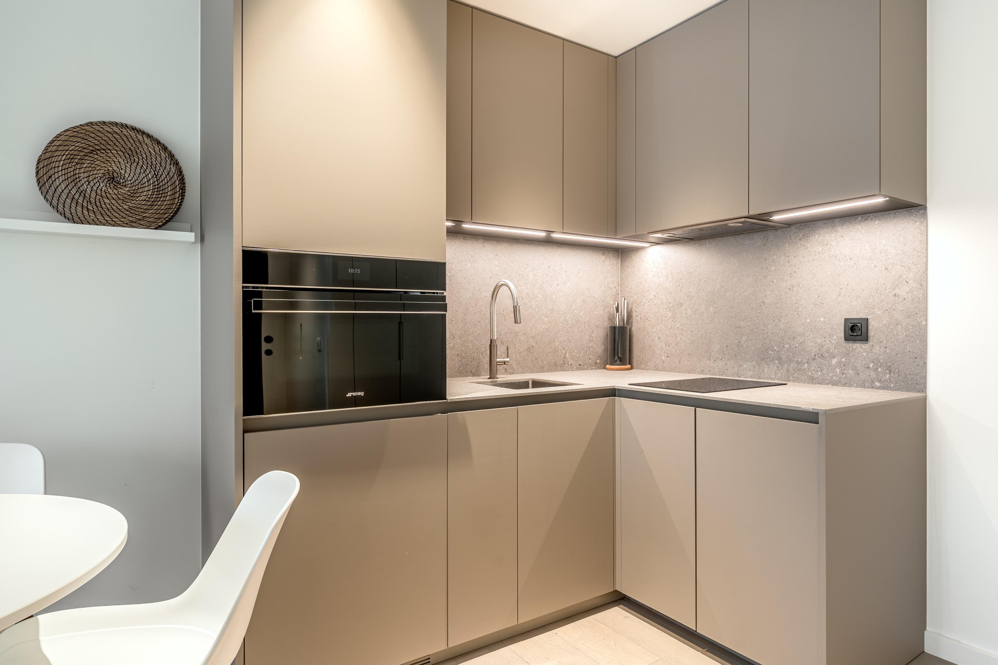 The apartment consists of a spacious open space living room with fully equipped kitchen, one bedroom and a complete bathroom.