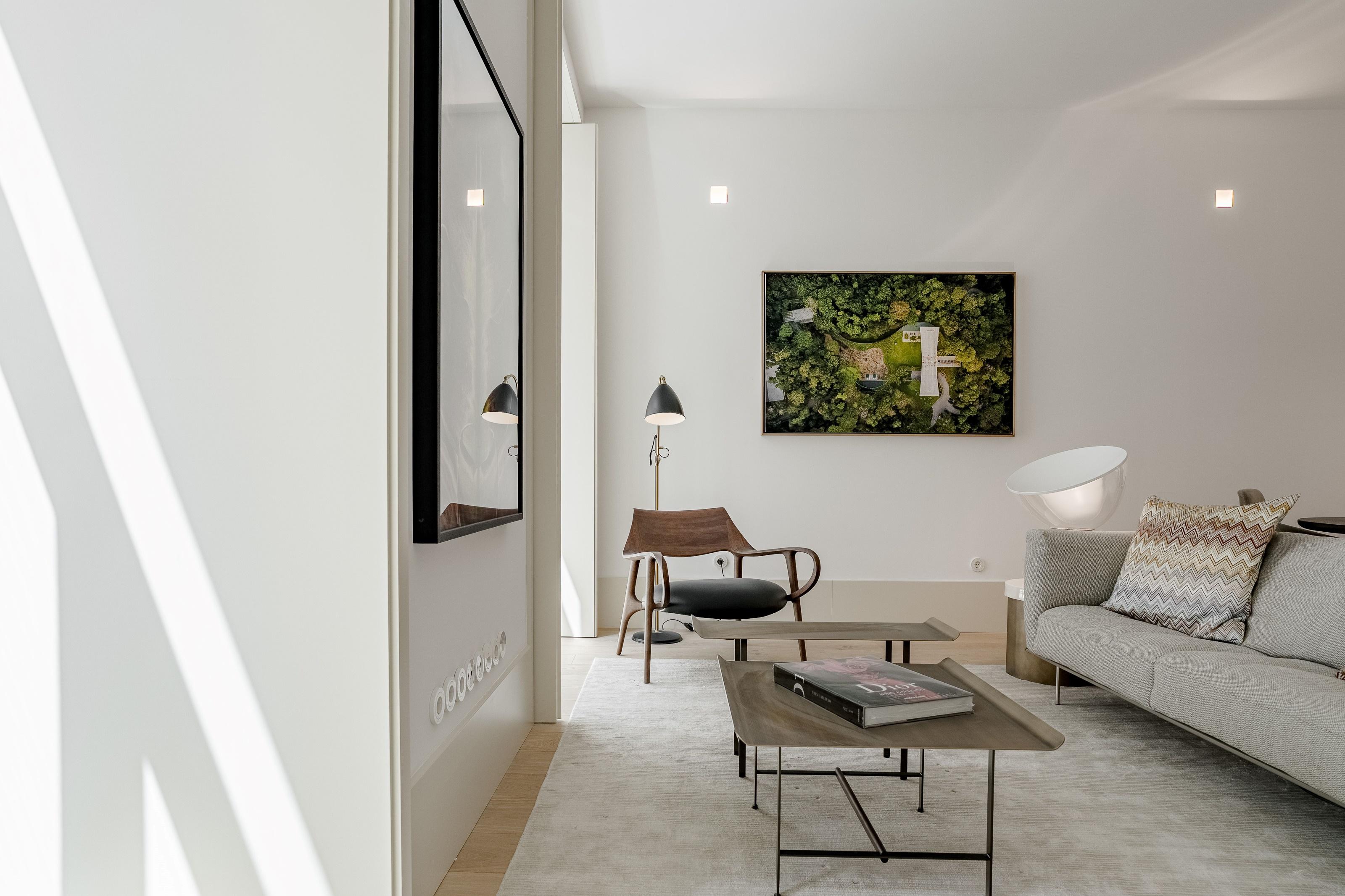 The interiors are distinguished by natural light provided by large windows of the original facades and high ceilings characteristic of the era. The apartments have been carefully designed so that living rooms occupy a strategic location, favoring views of various city streets. Premium finishes include lacquered natural woods and marble stones, combining elegance with functionality. All apartments have storage, and some units have automated parking with individual charging stations for electric vehicles.