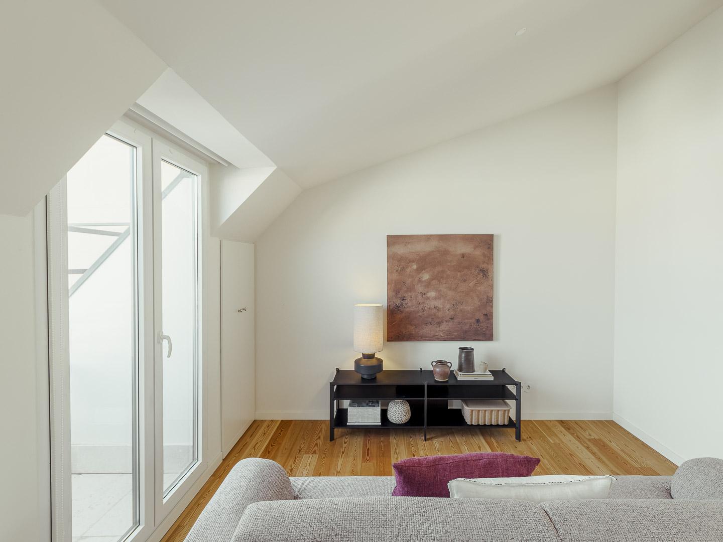The apartment is located on the top floor of a newly constructed building with only 12 units. The layout of the apartment prioritizes connection to the outdoor spaces, achieving an architectural balance in harmony with the living areas. In this way, natural light fills the thoughtfully designed spaces, providing a charming experience and illuminating an apartment where classic style and sophistication coexist.