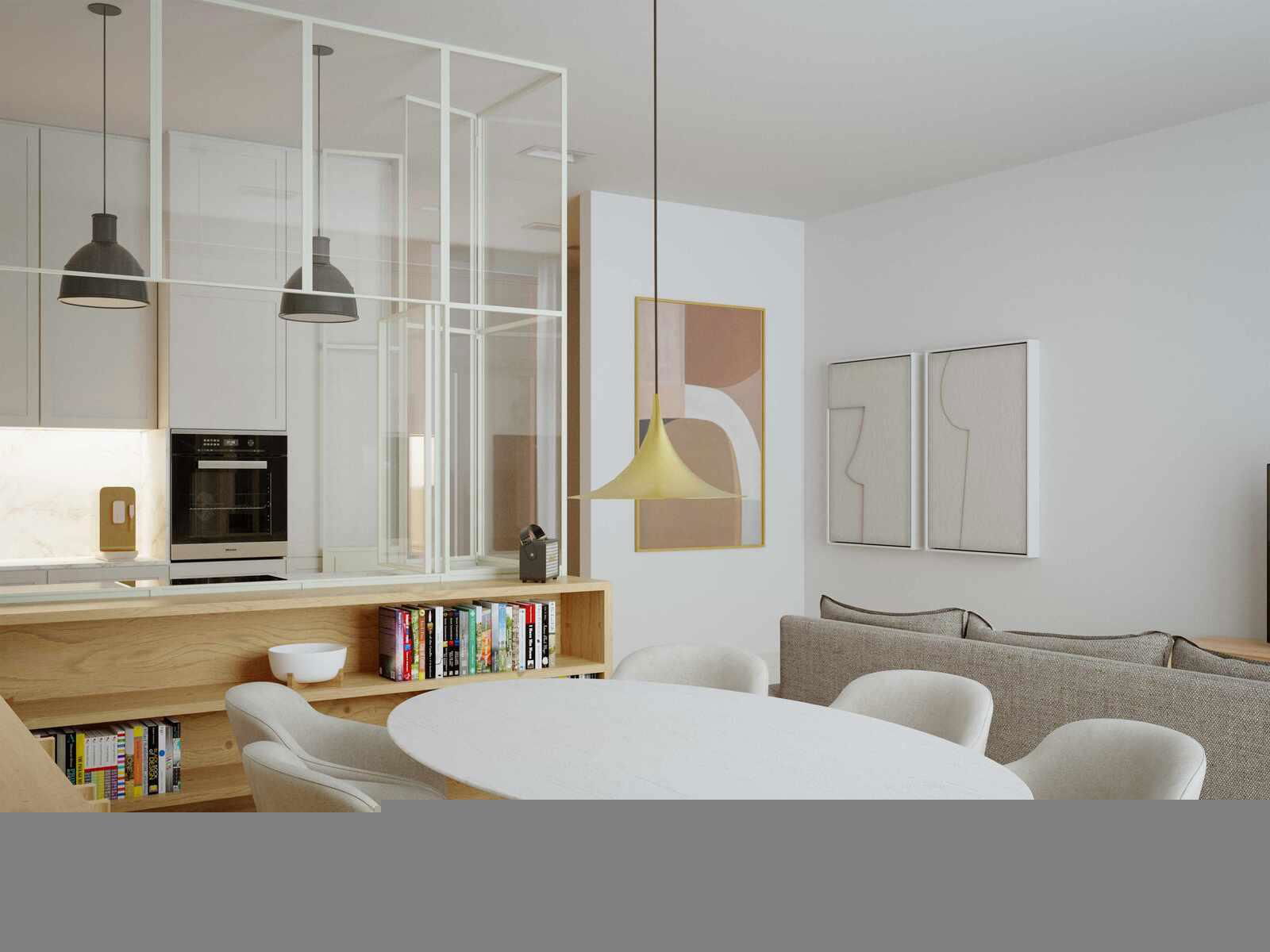 The apartments have high ceilings and large windows, ensuring natural light that enhances the interior spaces. The fusion between the living room and the kitchen creates a fluid and sophisticated environment, promoting a contemporary lifestyle.