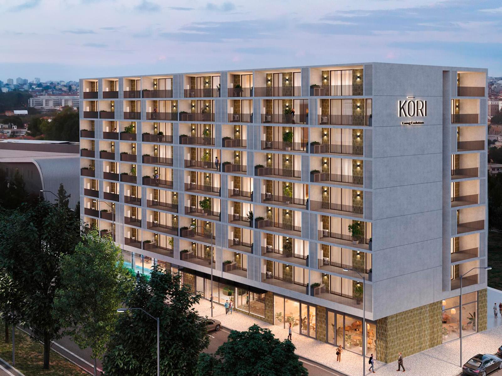 This development, spread over nine floors, offers a total of 112 apartments in the T0 Smart and T1 Smart typologies, with interior areas between 43 m² and 69 m².