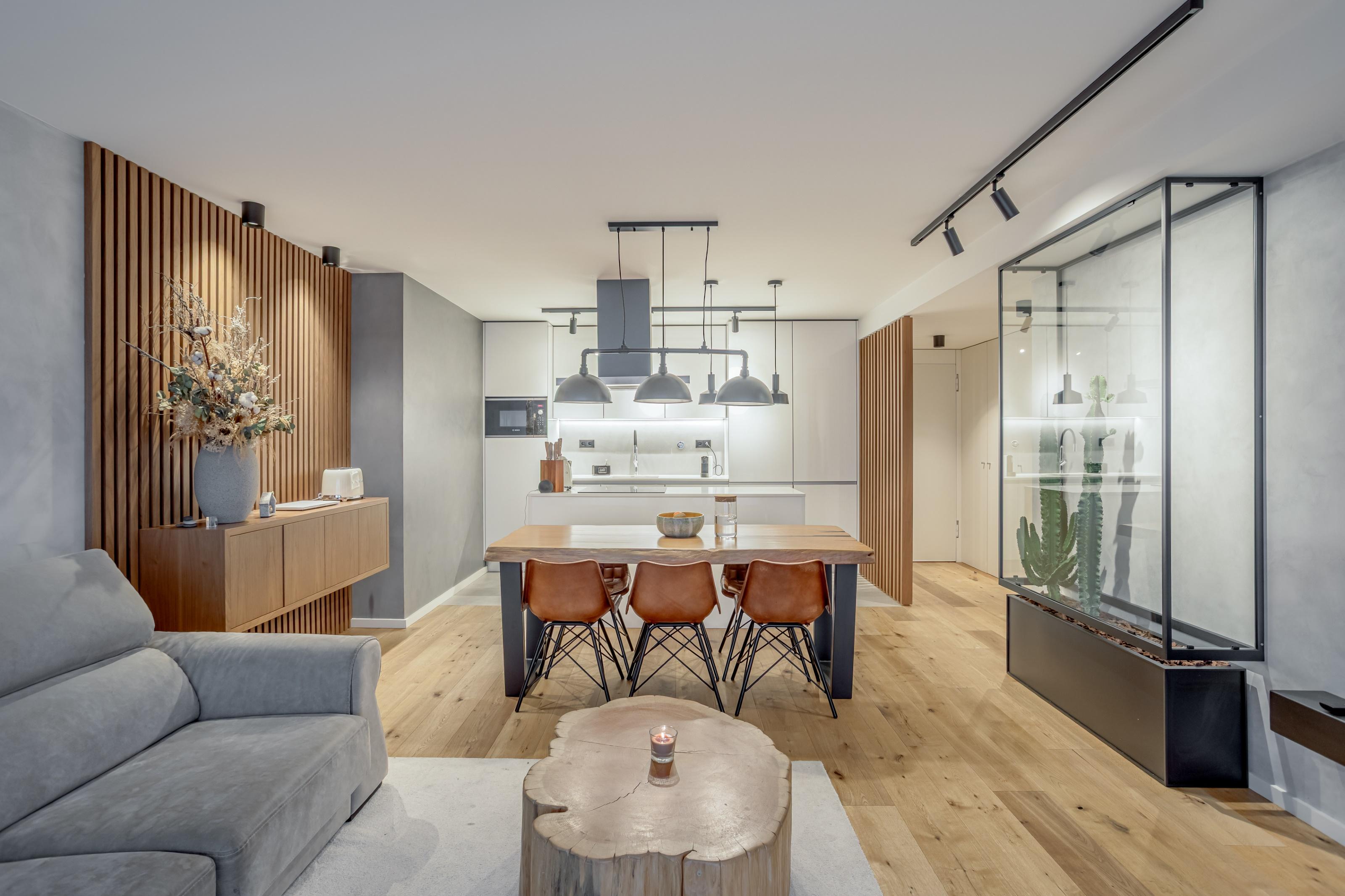 This property has two bedrooms, one of them en-suite, a full guest bathroom supporting the second bedroom, living room and kitchen in open space with a huge balcony where you can enjoy the sunset over the sea, and a parking space. All BOSCH brand kitchen appliances working in perfect condition, walls painted in micro-cement in the social area, with built-in TV. Sold completely furnished with living room and suite TVs, tables, chairs, sofa, beds, curtains and lighting, everything custom-made so you can move in and feel comfortable in your new home.