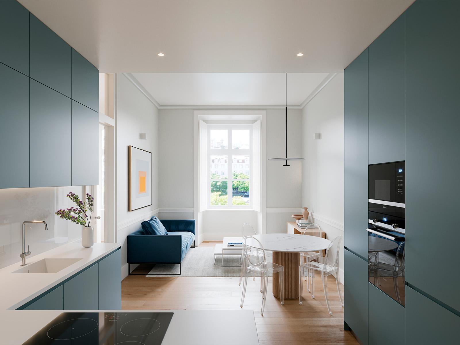 By the hand of the experienced and reputed studio INTERGAUP, the development not only recovers its elegance but also emphasises its privileged location, taking advantage of the environment so unique, so close and so alive, so Lisbon that surrounds it.