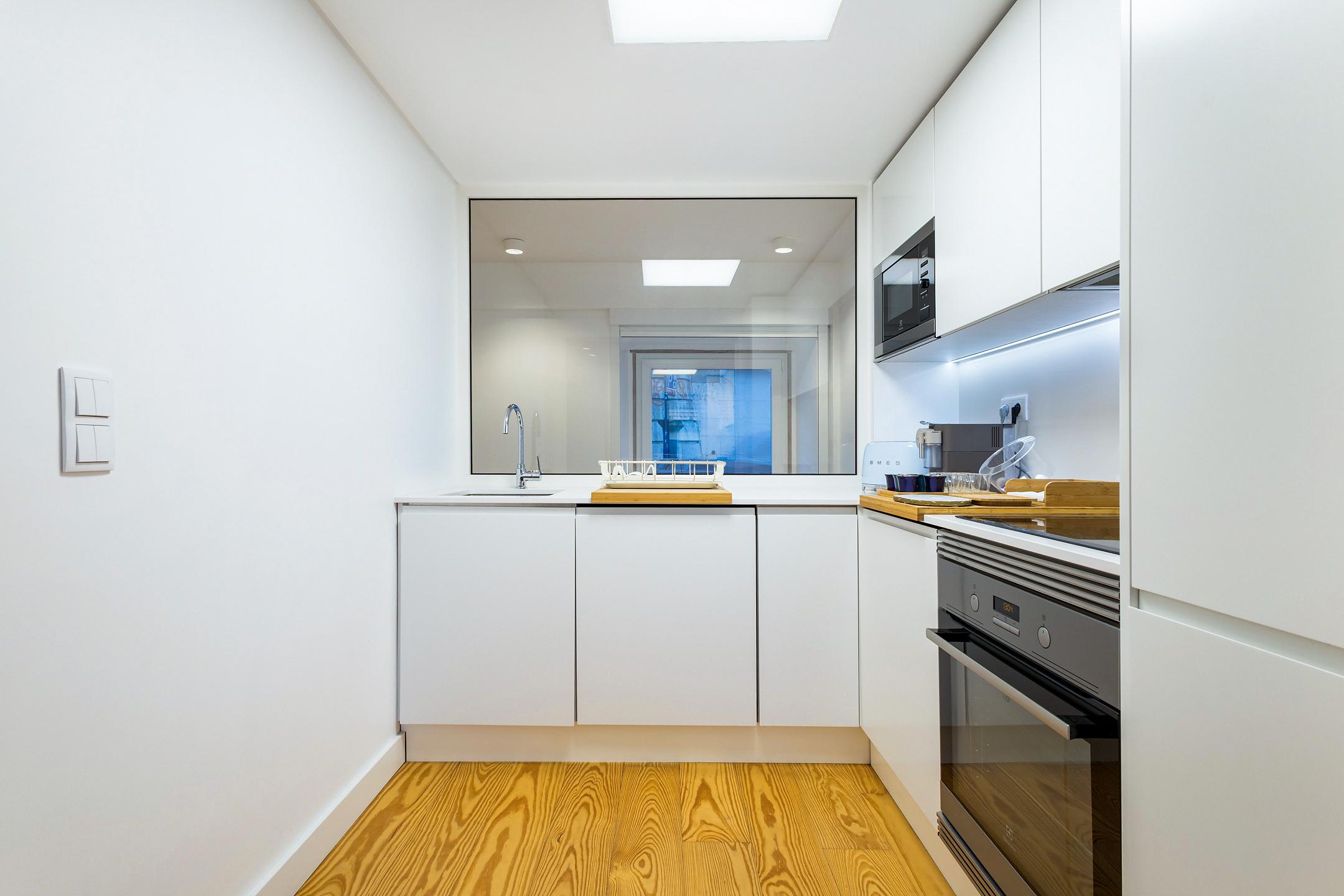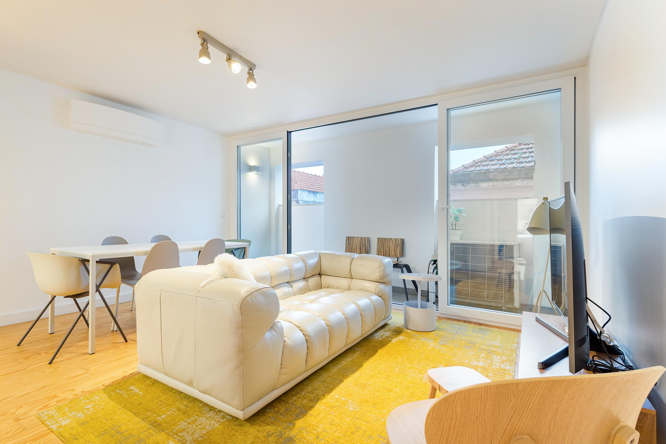 Duplex loft/studio flat converted into a 2-bedroom flat with 98 sqm of gross private area, in Príncipe Real, next to the São Pedro de Alcântara viewpoint, in Lisbon.
