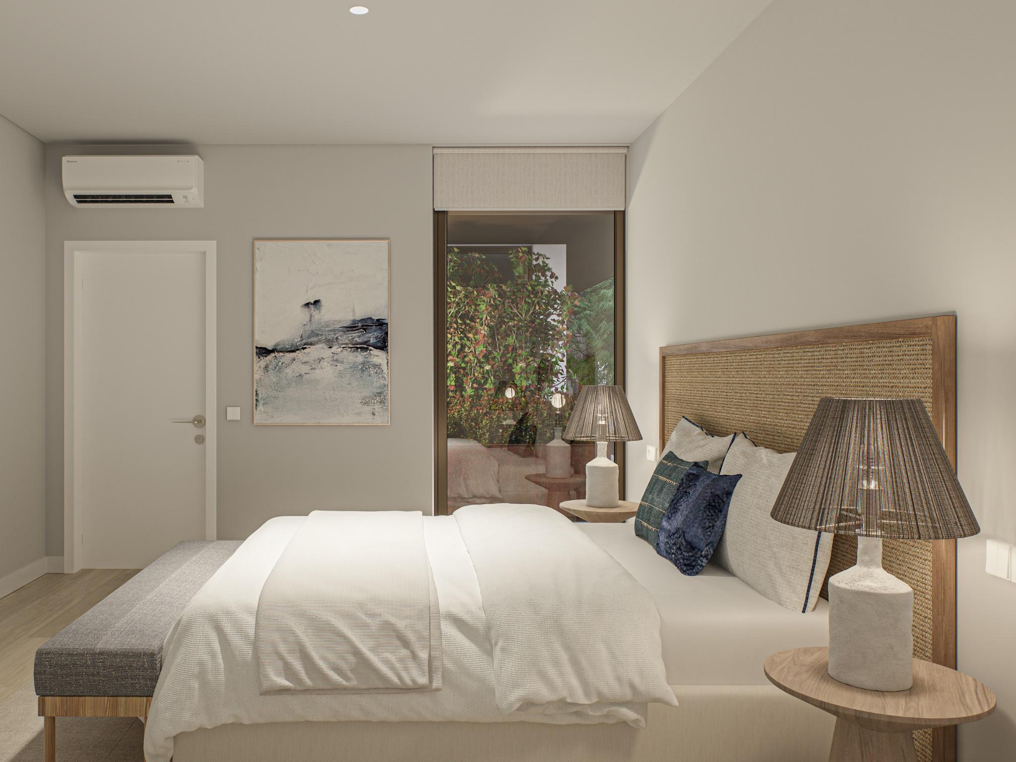 The development features T1 and T2 typologies, complemented by outdoor spaces. Some of the apartments have the ‘Family & Friends’ option, which allows easy transformation of a T1 into a T1+1 or a T2 into a T2+1, through built-in retractable beds that provide flexibility and versatility to the spaces.