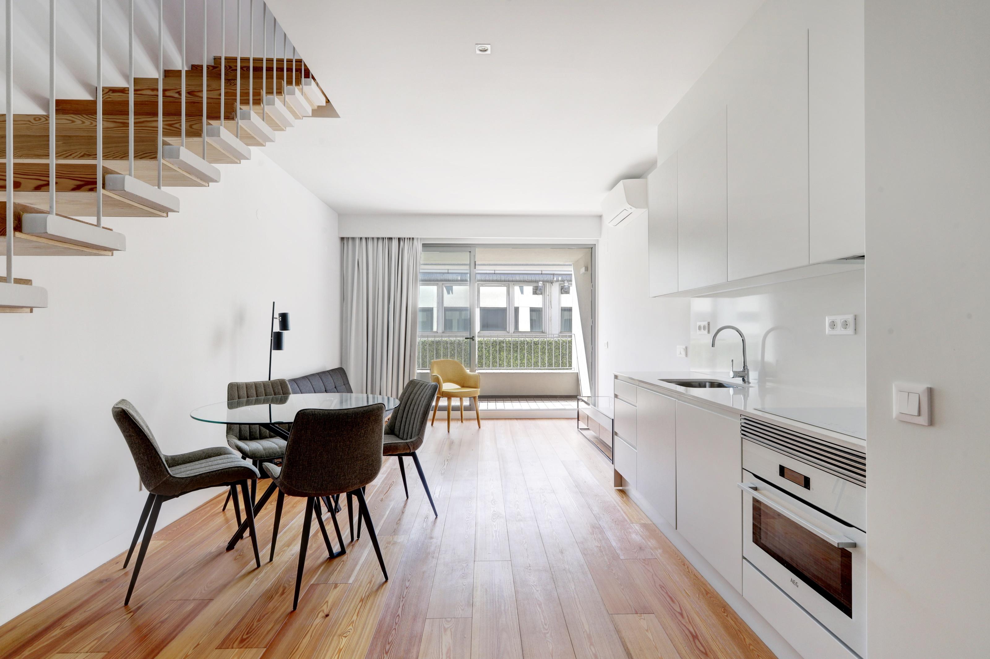 2 bedroom duplex flat with 76 m² of private gross area, two bedrooms, a bathroom, two terraces, garage, storage room and concierge, located on Avenida Casal Ribeiro, heart of Avenidas Novas.