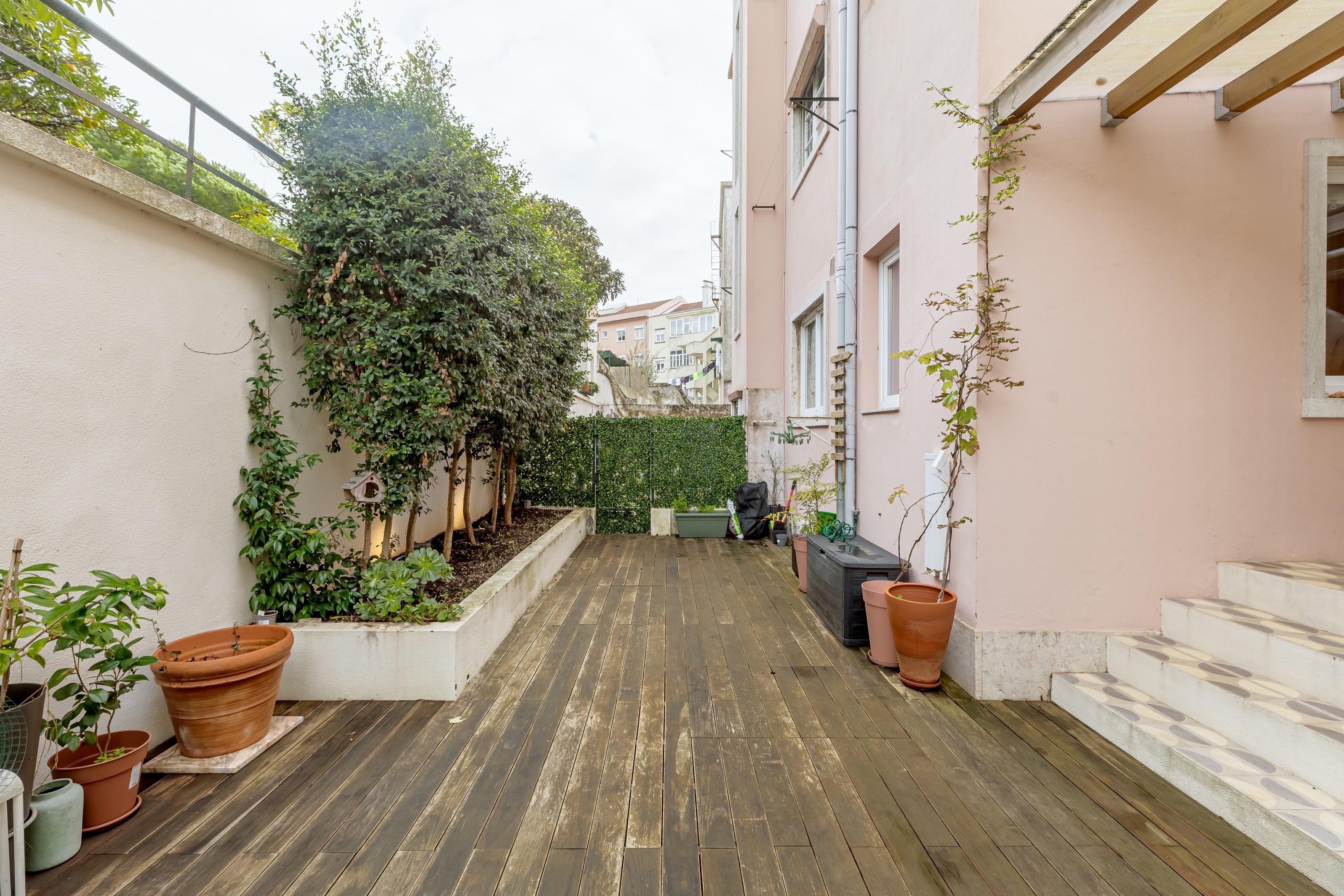 2-bedroom apartment with 97m² of gross private area and private terrace of 46m², located in a well-maintained building on Rua Dom Jerónimo Osório in Restelo, Lisbon.