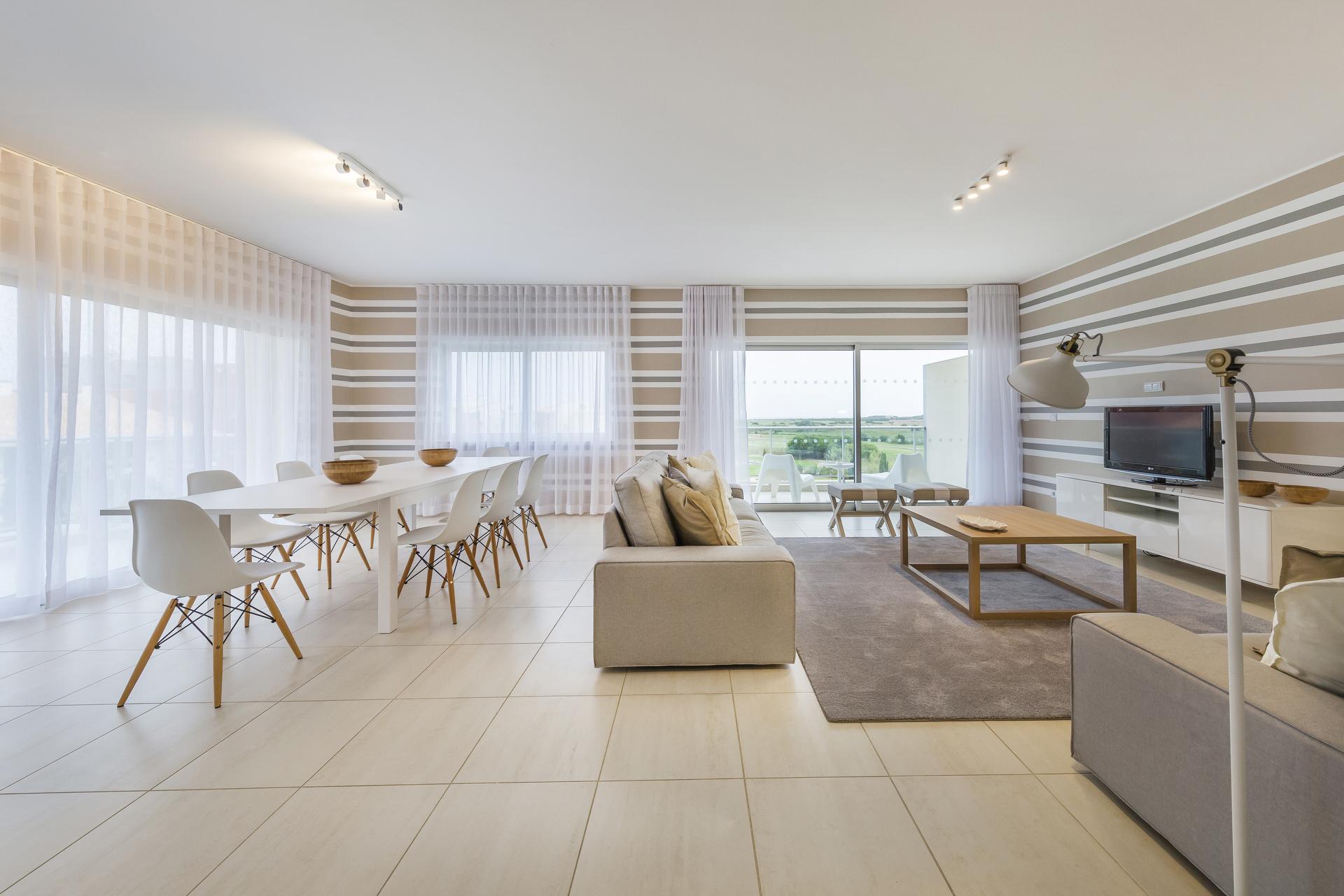The apartments include balconies and terraces, with panoramic views of the sea, golf course, gardens and swimming pool.
