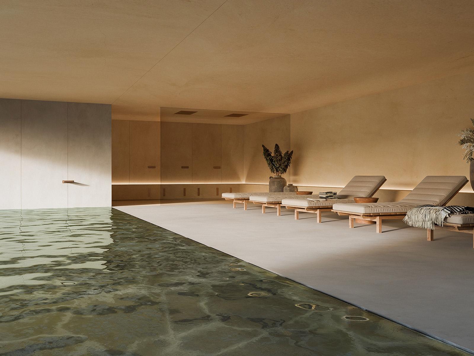Indoor area: Wellness centre, gym, spa and multifunctional lounge.