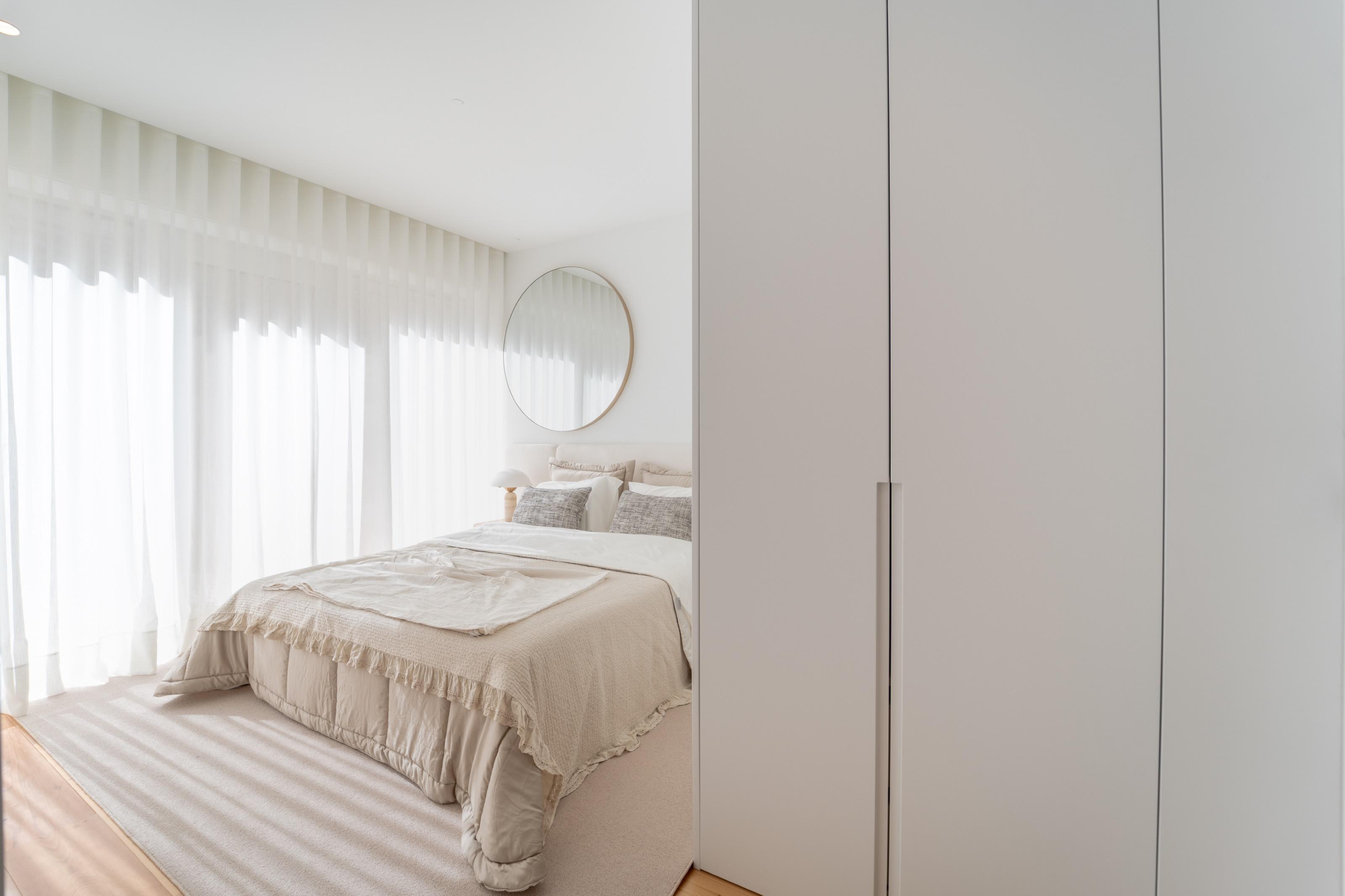 The glass façade, the developer’s trademark in all projects, takes purposeful advantage of the rich sun exposure of the mouth of the Douro River in Vila Nova de Gaia and floods each unit with pure light while subtly reflecting the sun, creating a mirrored appearance that guarantees total privacy.