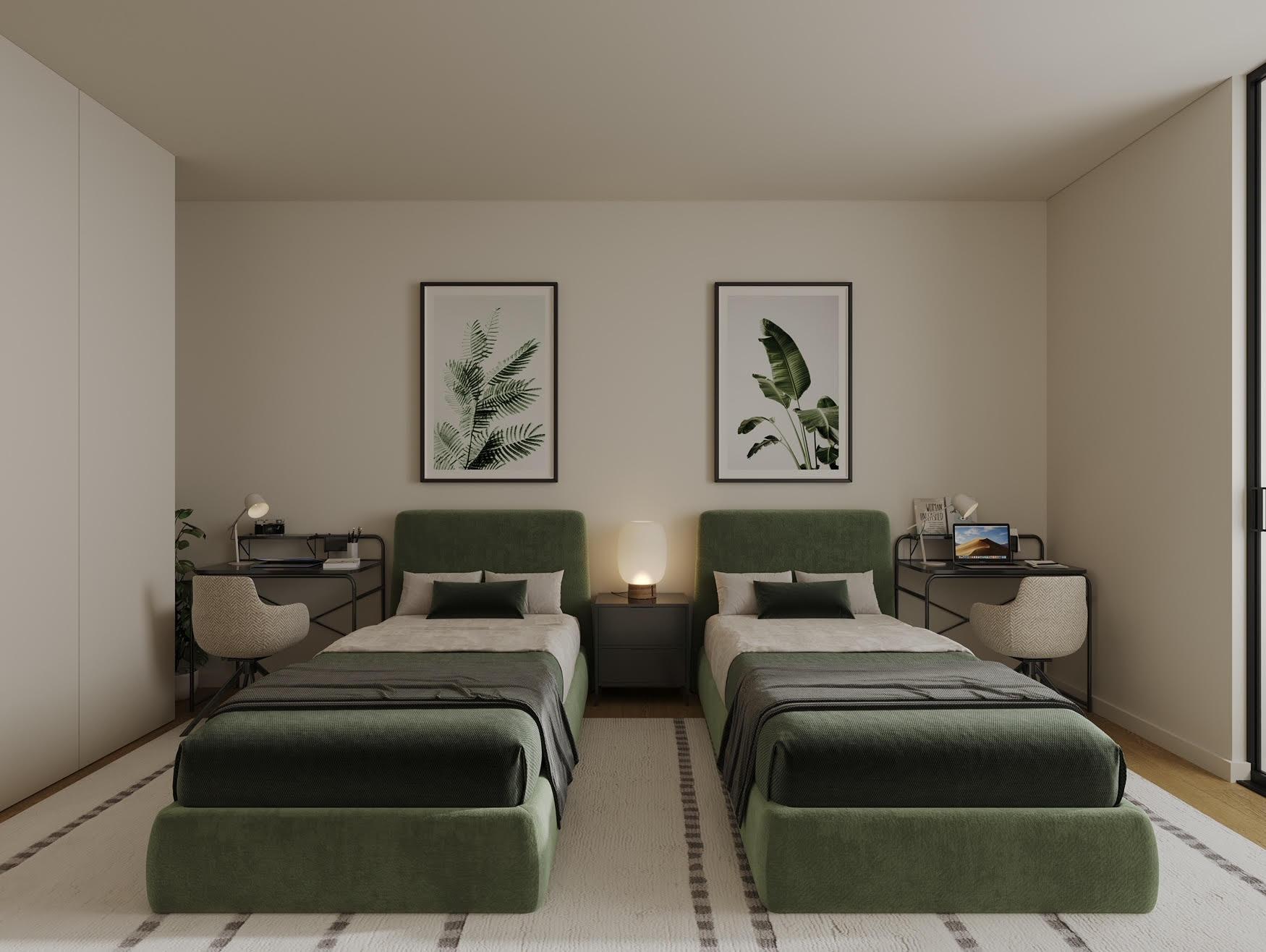 Consisting of 93 fractions spread over 3 floors, with a modern and functional concept, with typologies T0, T1+1, T2K and T2 and premium amenities, including: common laundry, multipurpose condominium room, large green spaces and an electric scooter sharing park that ensure eco-sustainable mobility at the doorstep. All apartments have a balcony and parking space.
