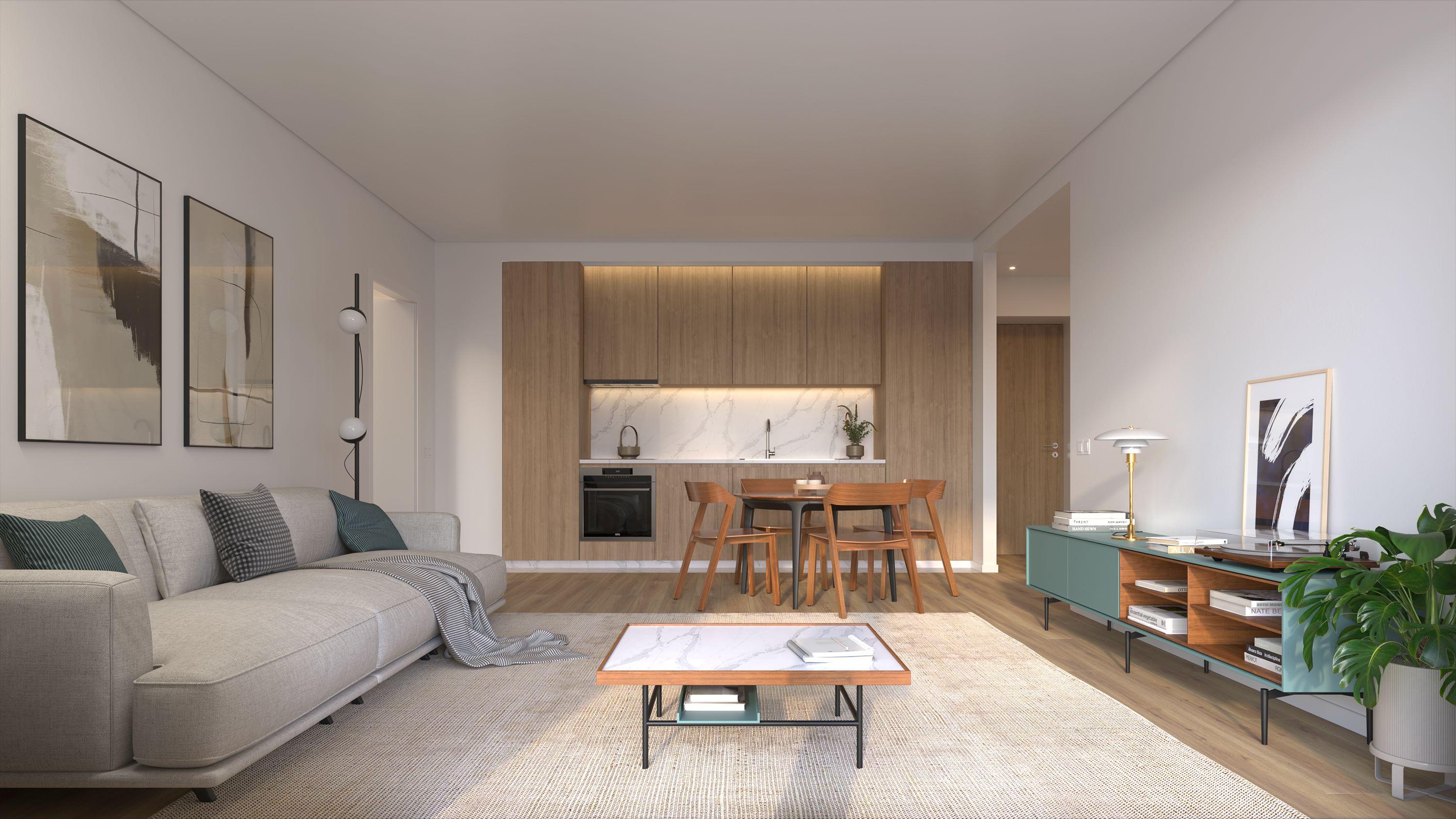 New 3-Bedroom apartment with 100 sqm of gross private area, featuring a balcony, private parking, and storage, this apartment is part of the Quadra condominium in Vila Nova de Gaia, Porto. The apartments include a fully equipped kitchen with Siemens appliances, air conditioning, a video intercom system, abundant natural light, and spacious interiors.