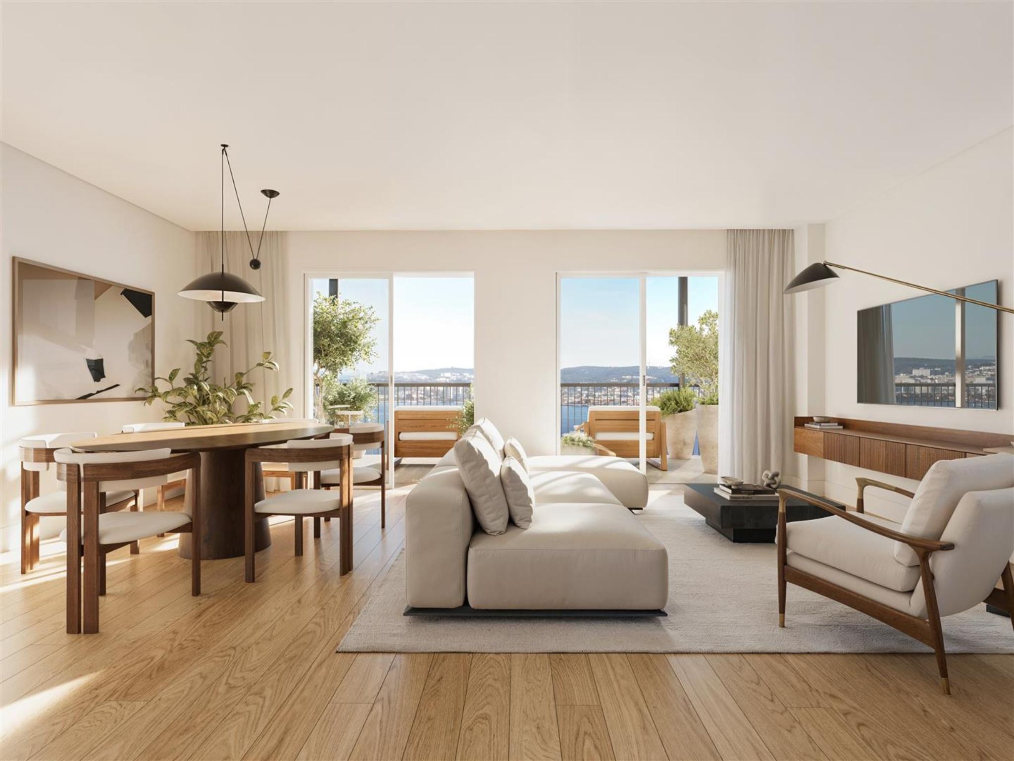New 3-bedroom apartment, with 150 sqm of private gross area, balcony and parking, at Riverscape, on Cais do Ginjal, in Almada. The apartments feature modern kitchens, contemporary design, floor-to-ceiling windows and spacious balconies offering views of the Tejo River.