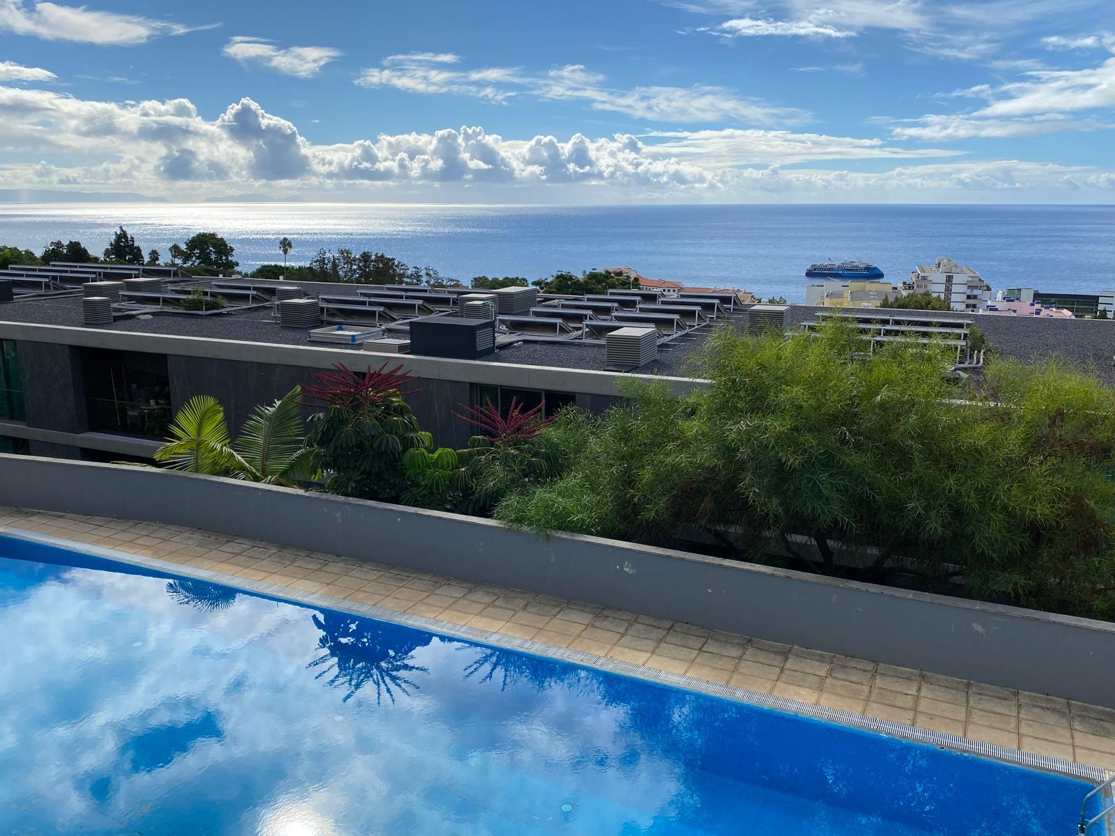 3-bedroom apartment with 190 sqm of total area, of which 148 sqm are gross private area, with sea view, two parking spaces, two storage rooms, in the Casa Branca area, in the gated condominium with pool ‘Colina da Casa Branca’, at Rua da Fundação Zino, Funchal, Madeira.