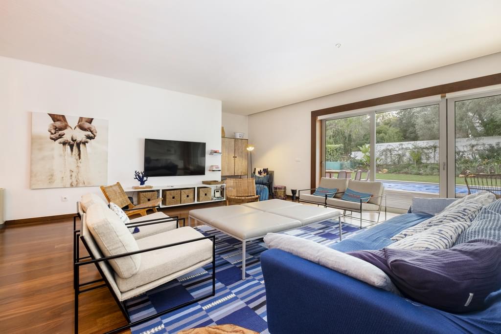 The living room is large and well-lit, ideal for leisure and socializing. One of the great advantages of this property is the balcony with a garden and private pool.