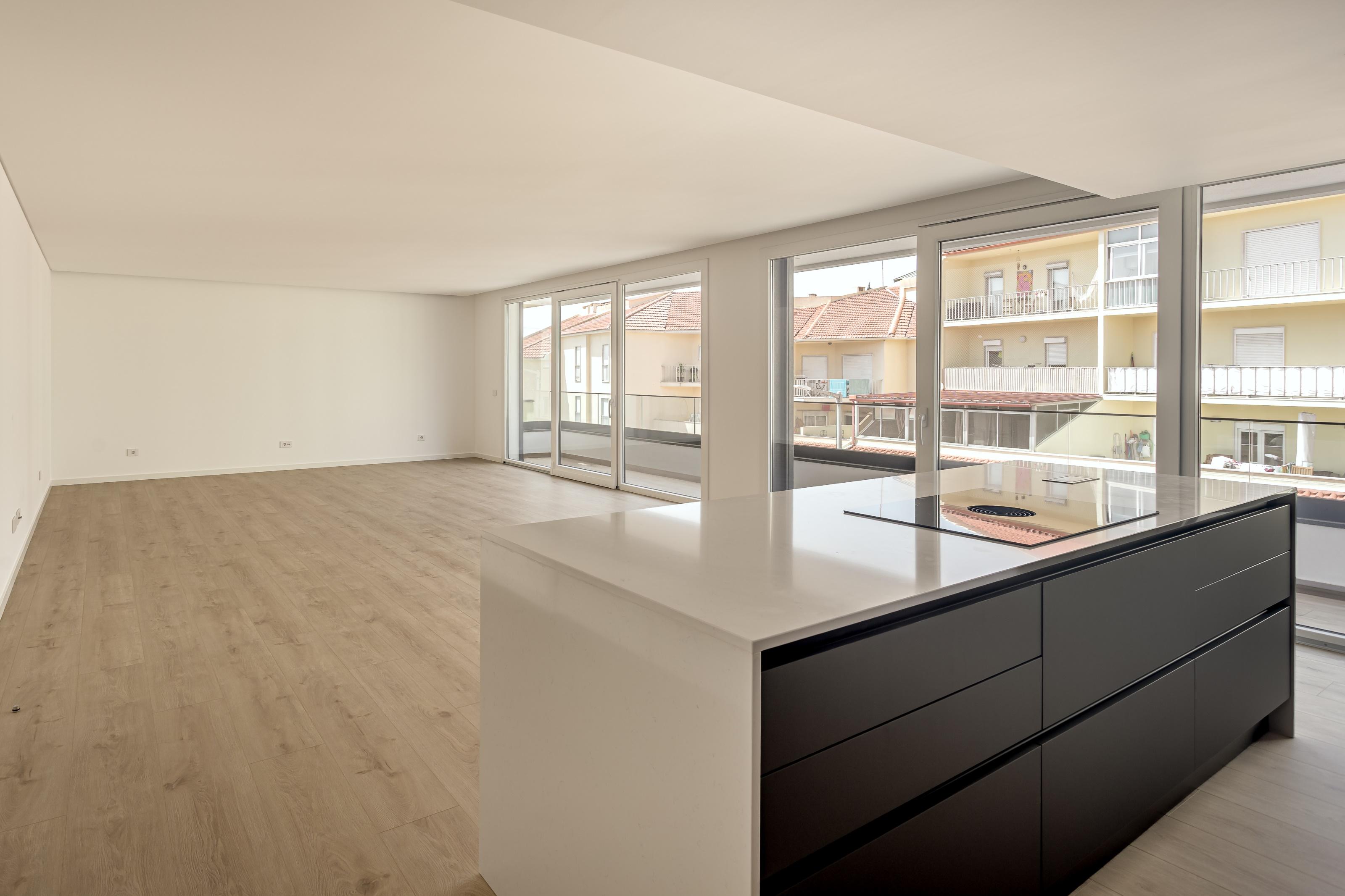 3-bedroom apartment with 160sqm of private gross area, sea view, 47 m² terrace, 24 m² balcony, and two private garage spaces in Parede/Carcavelos, Cascais.