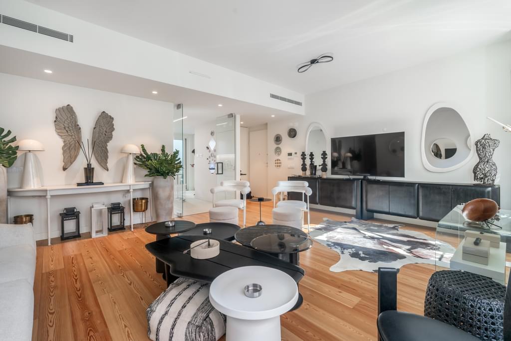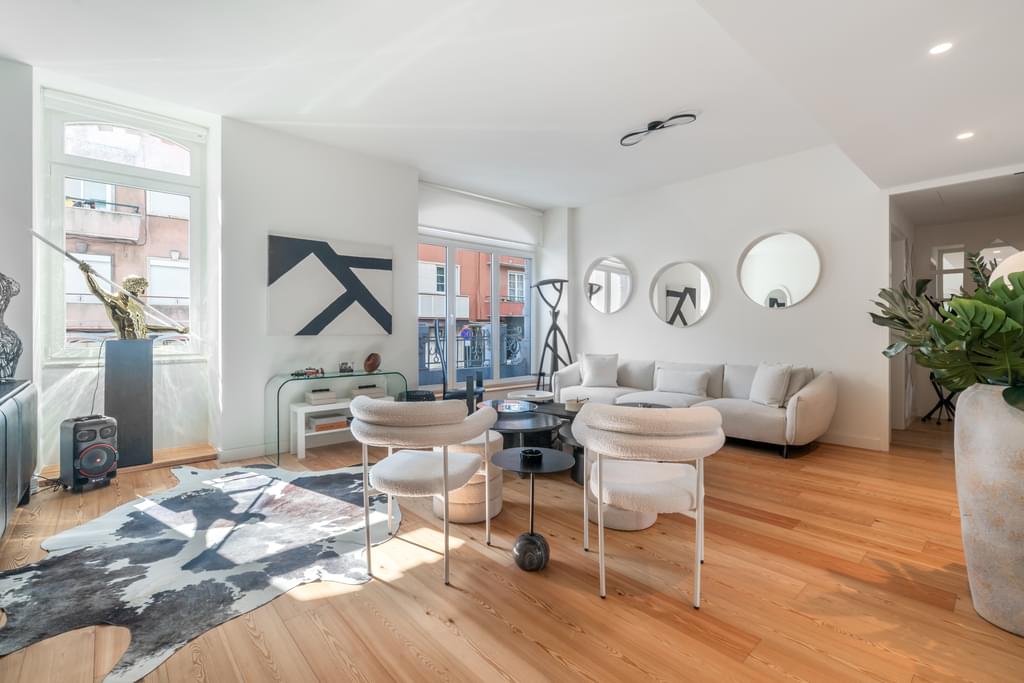 We present this magnificent 3-bedroom apartment located in the heart of Lisbon, in the prestigious Santo António area. With a living area of 131m², this property combines elegance, comfort, and a prime location, ideal for those seeking quality living in the city center. Although the photographs show the flat furnished, the property is empty and is sold as such. The flat has three bedrooms, including a suite with a private bathroom, and two more spacious bedrooms. The large living room offers a cosy atmosphere, perfect for socialising, while the fully equipped kitchen ensures functionality and modernity. Two balconies, totaling 50m², provide an ideal outdoor space for relaxation or entertaining guests. Additionally, the property includes a second full bathroom and two parking spaces, a true asset in the city center. Part of the exclusive Conde de Lima Condominium, this apartment offers a cosmopolitan and sophisticated lifestyle. The condominium consists of two buildings connected by a shared garden area, ensuring privacy and tranquility. Residents have access to a full range of wellness services, including a heated indoor pool, sauna, Turkish bath, and gym. The location is simply unbeatable. Situated between Rua Bernardo Lima and Rua Ferreira Lapa, the property is just a few minutes’ walk from the iconic Avenida da Liberdade and Praça do Marquês de Pombal. The area is served by a wide network of shops, services, schools, and public transport, as well as being close to Eduardo VII Park, one of Lisbon’s largest green spaces.