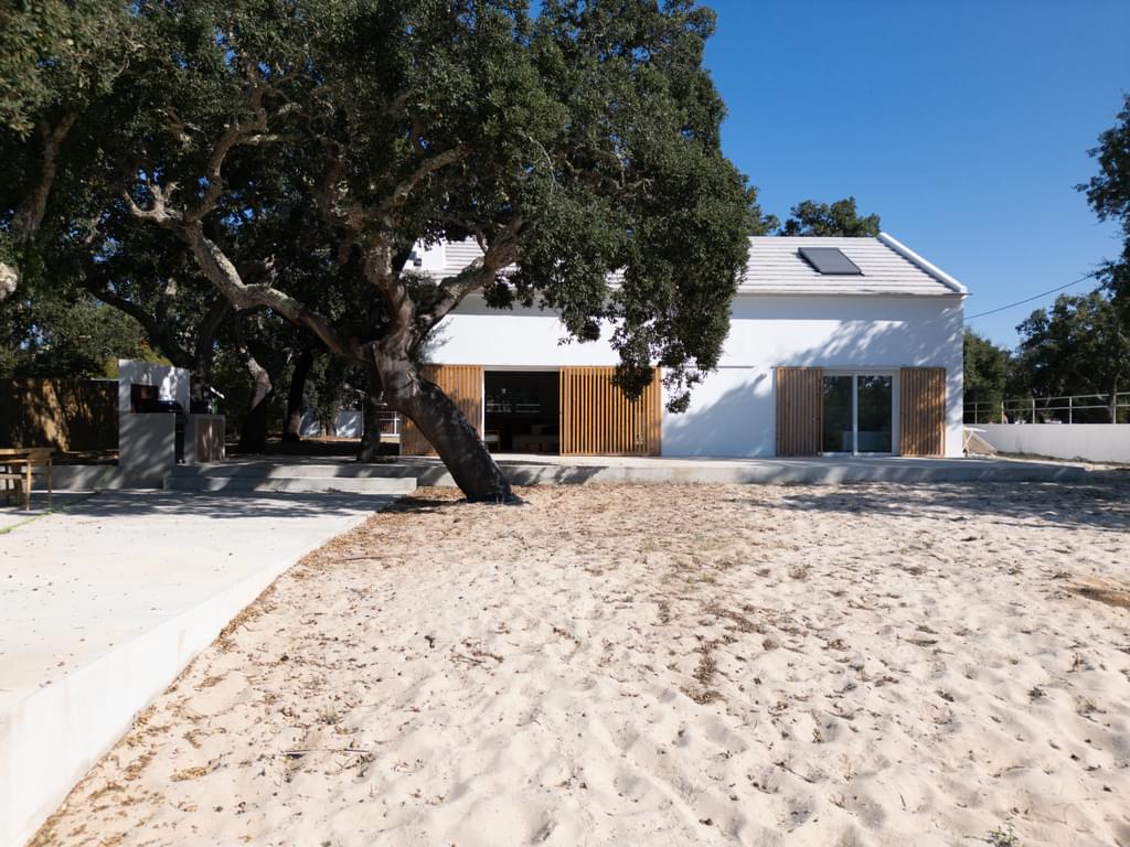 Detached 3 Bedroom Villa, just 2 minutes away from the centre of Melides, implanted on a 4,600 sqm plot of land. This charming villa stands out for its modern architecture and the comfort it offers, perfectly integrated into the surrounding natural landscape. Distribution of the villa: – Fully equipped kitchen in open space, harmoniously connected to the living room, which features a cozy fireplace. – Two spacious bedrooms, one with an embedded wardrobe. – Modern and functional bathroom. – Mezzanine with an additional living area, ideal for relaxing moments. – Large and comfortable suite, offering privacy and serenity. Additional Features: -All rooms are equipped with Whirlpool air conditioning. – Microcement flooring, providing a contemporary and elegant look. – Water heater for hot water supply. – High-quality Bosch household appliances, except for the induction hob, which is of the AEGE brand. – Bathroom mirrors with integrated LED lighting. Outdoor Space: The outdoor area offers a true sense of peace, with a stunning swimming pool surrounded by nature and a barbecue area, perfect for outdoor gatherings. The surrounding cork oak trees and open countryside ensure privacy and a deep connection with nature. Prime Location: – 1 hour away from Lisbon – 3 minutes away from the Melides Beach – 10 minutes away from the Santo André Lagoon – 30 minutes away from the beaches of Carvalhal and Comporta This villa is the ideal choice for those seeking to live in harmony with nature without compromising on comfort or proximity to the region’s main attractions.