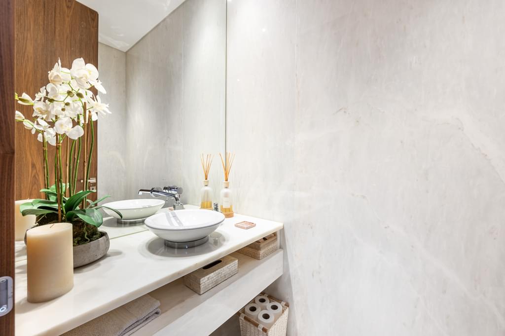 On the lower floor, the villa offers several lifestyle amenities designed for comfort and leisure, including a private cinema room, gym, wine cellar, multiple storage areas and a spacious garage for four cars.