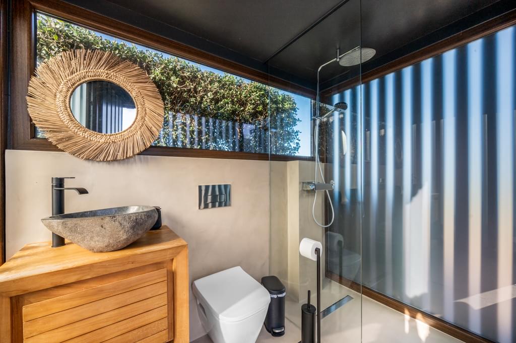 This villa also offers an elegant covered outdoor space, ideal for leisure and socialising, equipped with a professional kitchen, comfortable living and dining area, complemented by a full bathroom for added convenience.