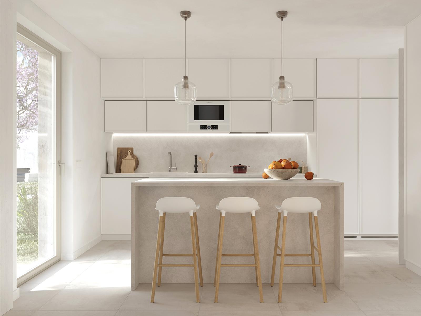 The apartments open to the city and the garden through balconies and large windows that also invite the entrance of the light of Lisbon.
