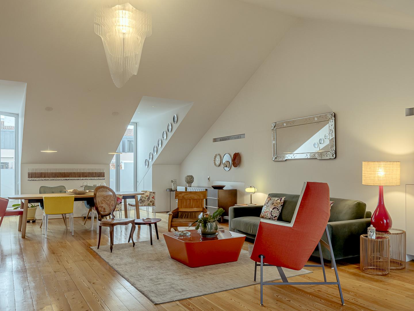 3-bedroom duplex penthouse with 275sqm of gross private area, terrace, and four parking spaces, located between Príncipe Real and Estrela, in Lisbon.