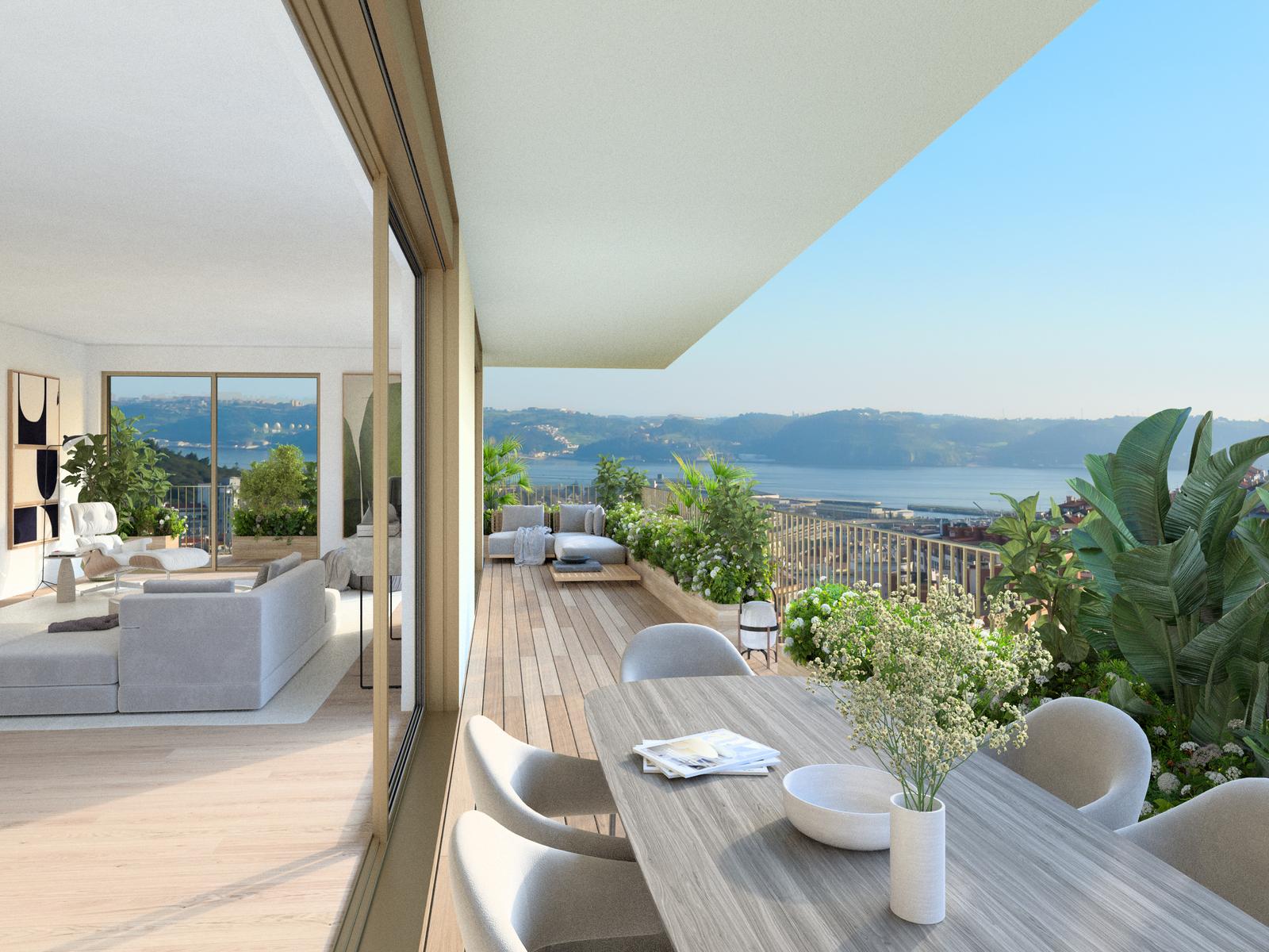 Apartments from 1 to 4-bedrooms distributed over 3 buildings of only 2 and 3 floors and a tower of 8 floors that offers stunning views of the river, Monsanto and the city.