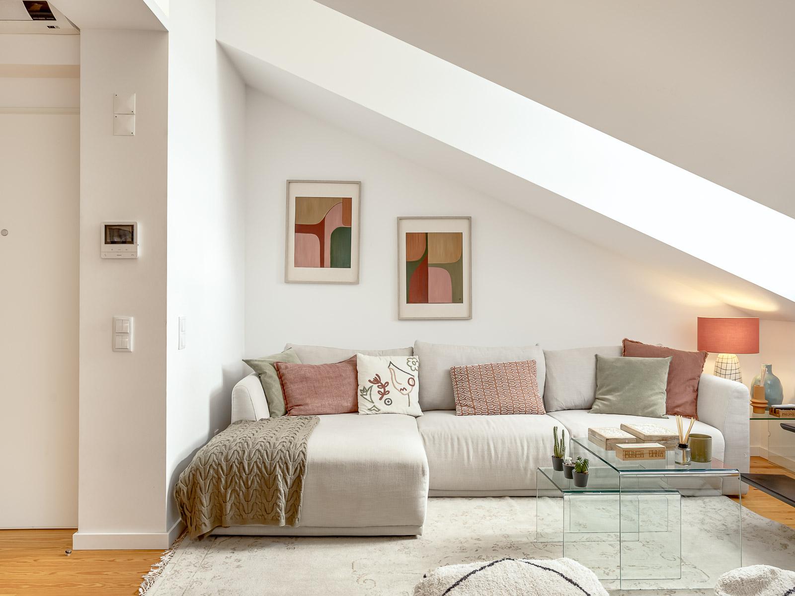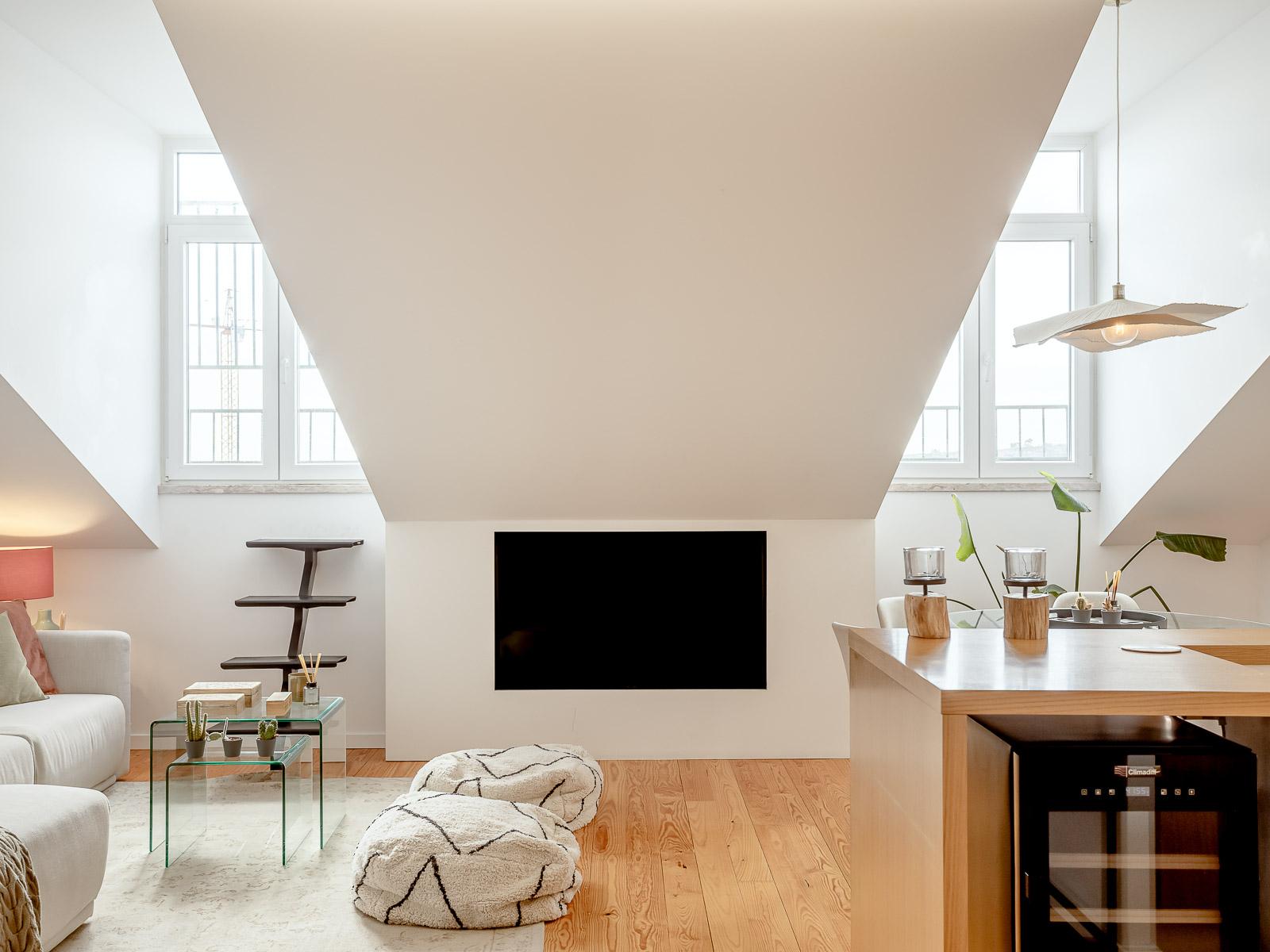 Apartamento T3 duplex em Lisboa, com 85 m2, três quartos, duas suítes, varanda e vista rio, inserido num edifício de traça tradicional totalmente reabilitado, na zona de Santos / Janelas Verdes. Distribuído por dois pisos, destaca-se pela luminosidade, pela organização equilibrada dos espaços e pela qualidade dos acabamentos.