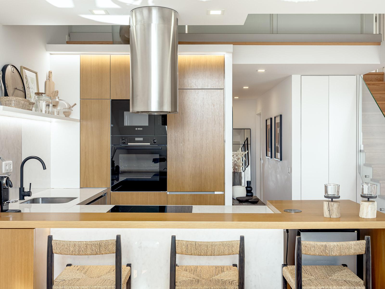 No piso superior, a mezzanine acolhe a segunda suíte, assegurando maior privacidade e versatilidade de utilização, quer como quarto principal, quer como espaço de trabalho ou de hóspedes.
