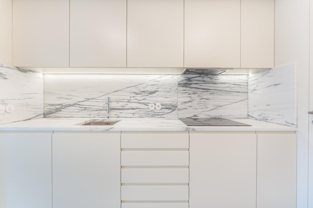 – Integrated kitchens with lacquered finishes and Portuguese marble countertops