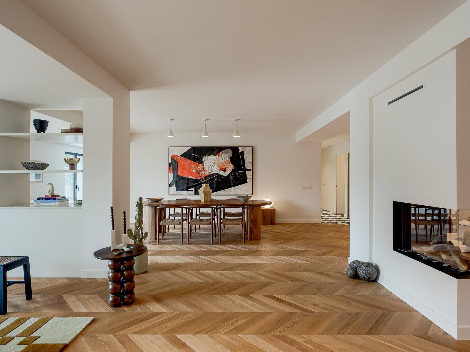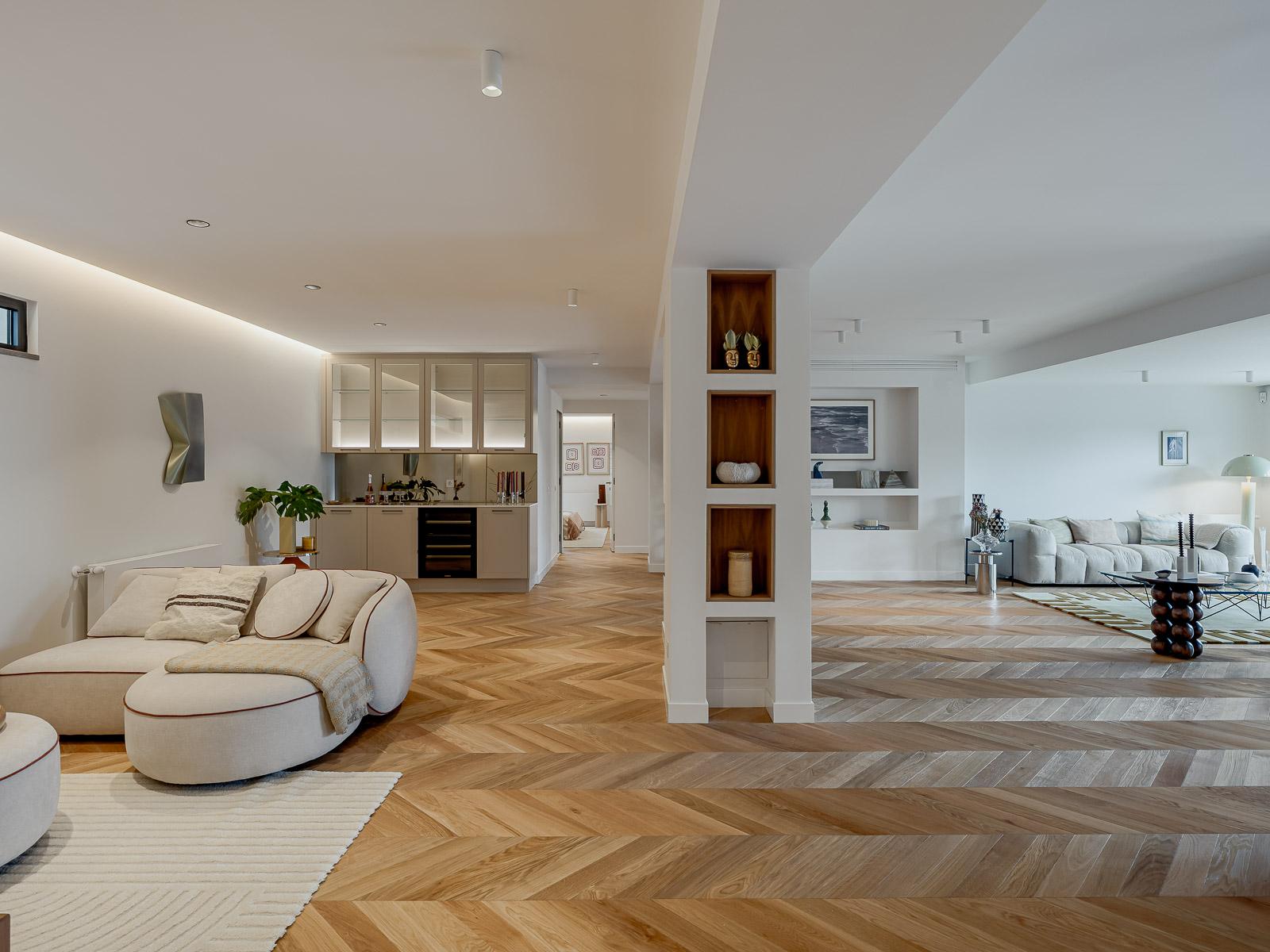 The flat also includes a laundry area, guest bathroom, central heating, air conditioning, gas fireplace, electric shutters and solar panels, reflecting quality construction materials and attention to detail.