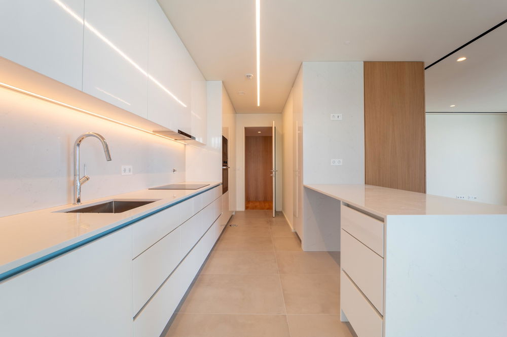 In the Scala Mare Development, the kitchens, with a contemporary and functional design, are in open space with the living room, promoting a large and inviting environment. The bathrooms stand out for their sophisticated aesthetics and noble materials, such as marble and high-quality wood.