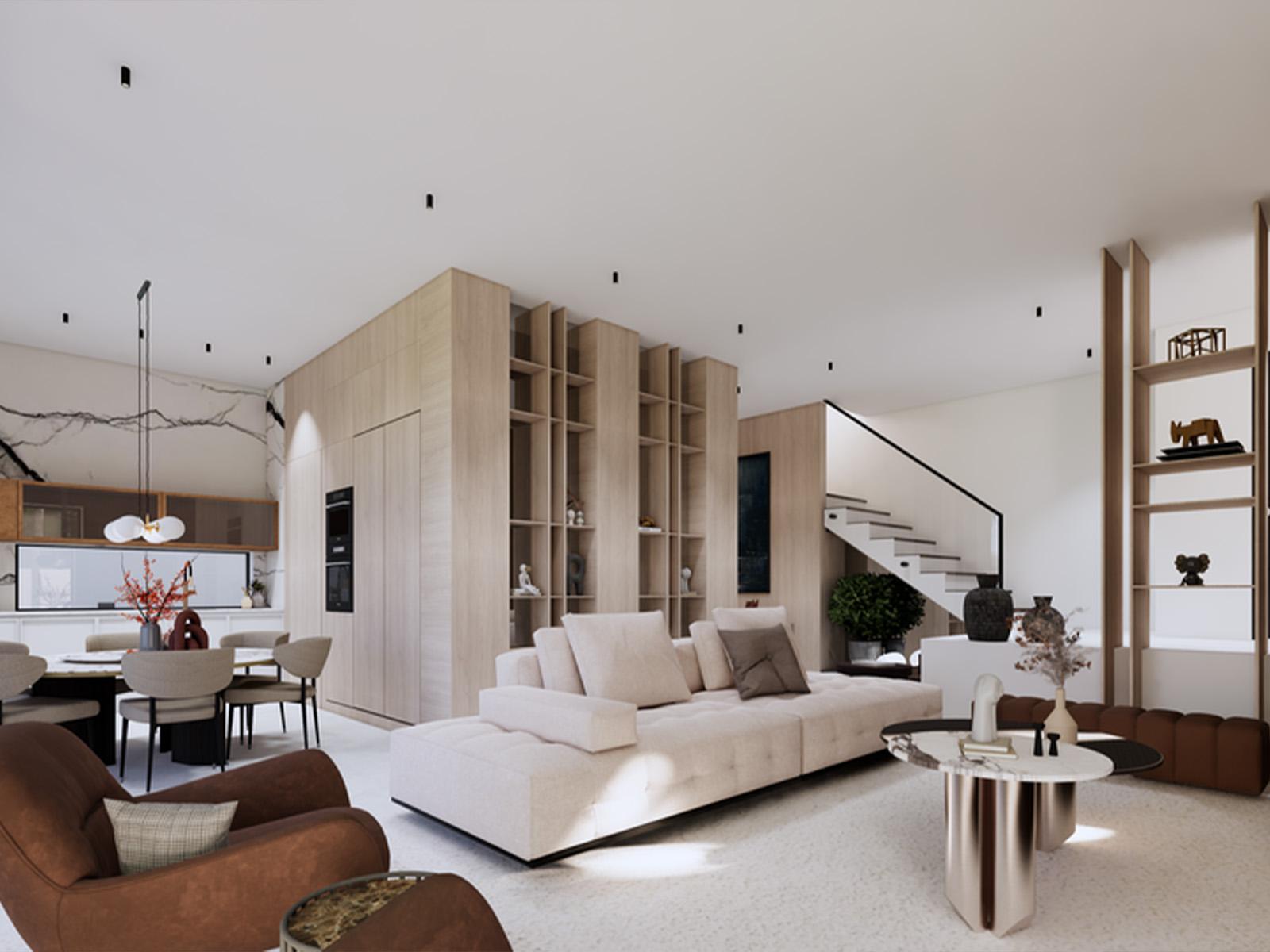 On floor 0, there is the living room, which communicates by sliding door with the equipped kitchen and pantry; a guest toilet and entrance hall.