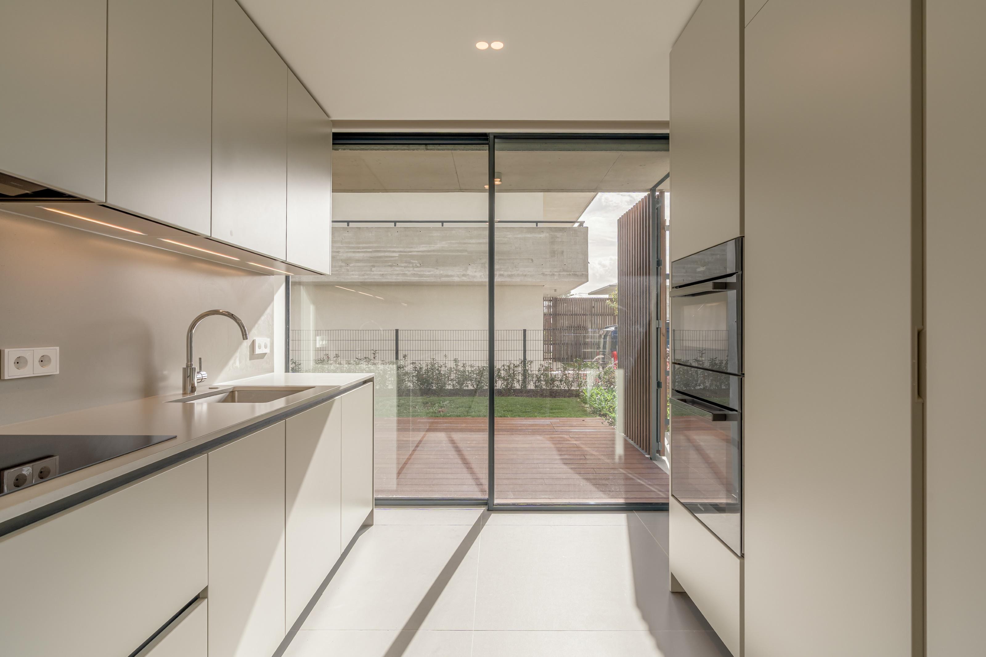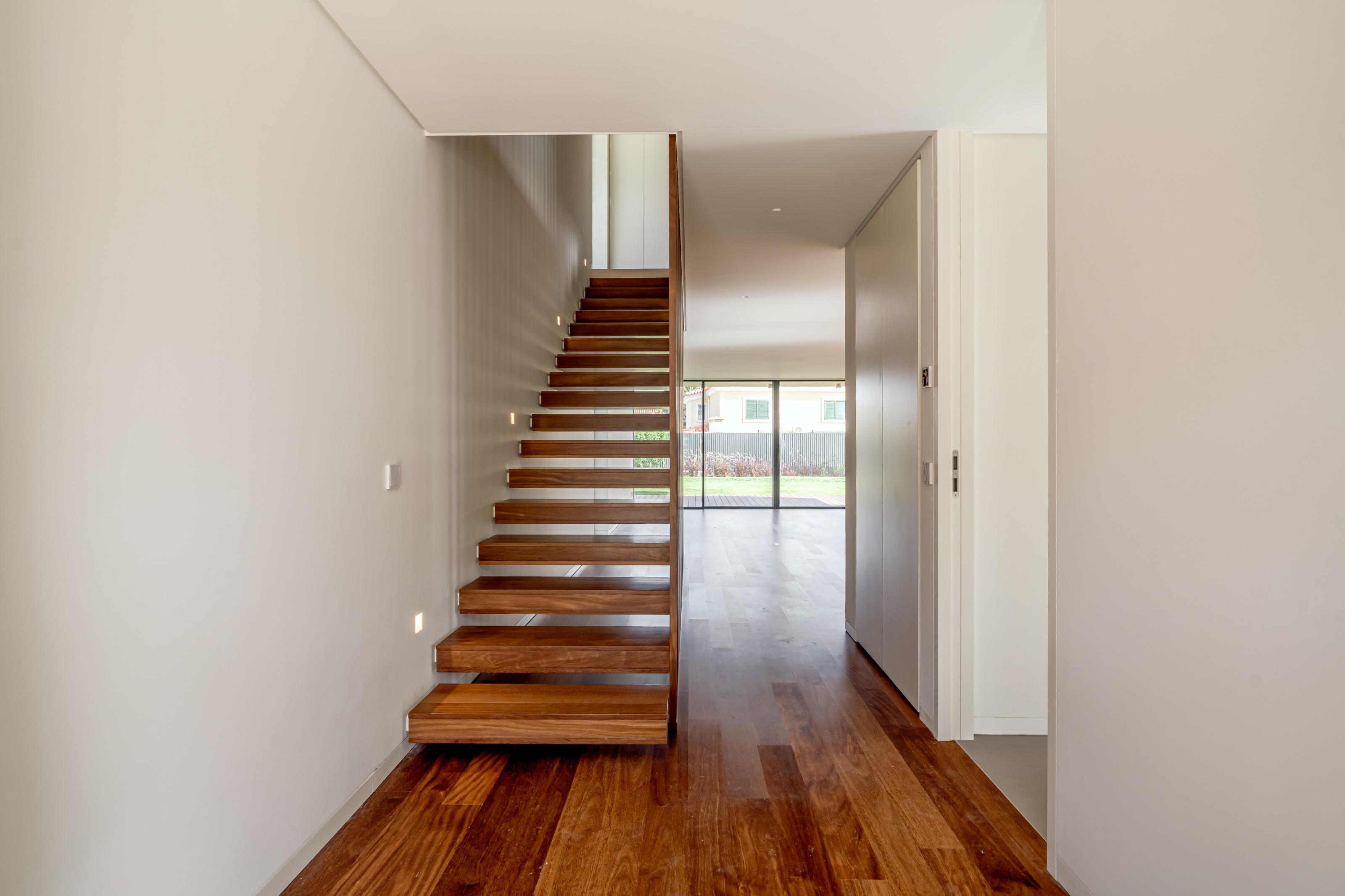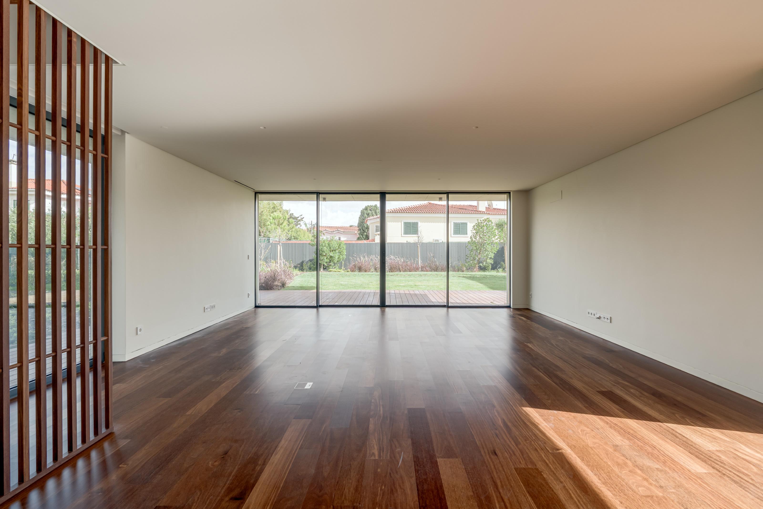 3-bedroom villa with 229 sqm of gross construction area, three parking spaces, private garden, and swimming pool, set within the Sandwoods condominium in Cascais.