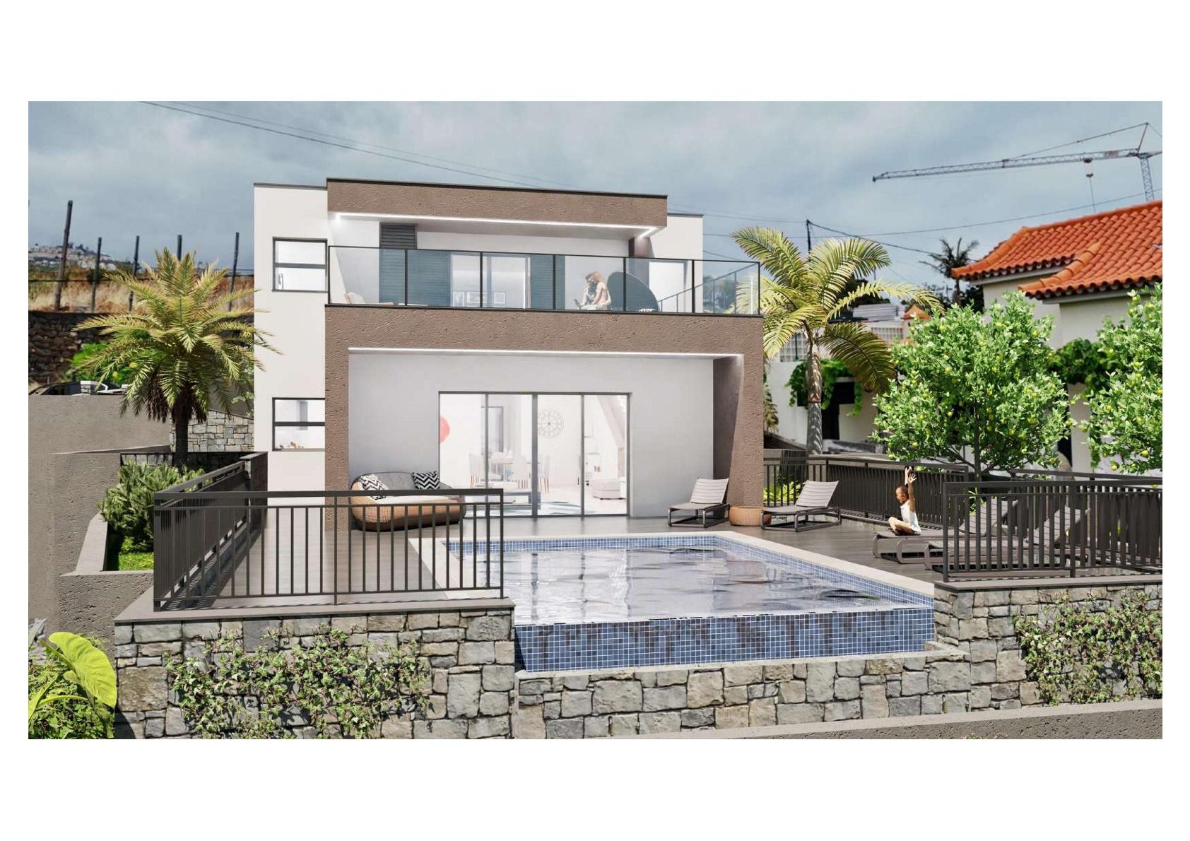 3-bedroom villa with 431 m2 of total gross area, panoramic pool and sea view, set on a 970 m2 plot in a development located in the Quebradas area of São Martinho, Funchal, Madeira.