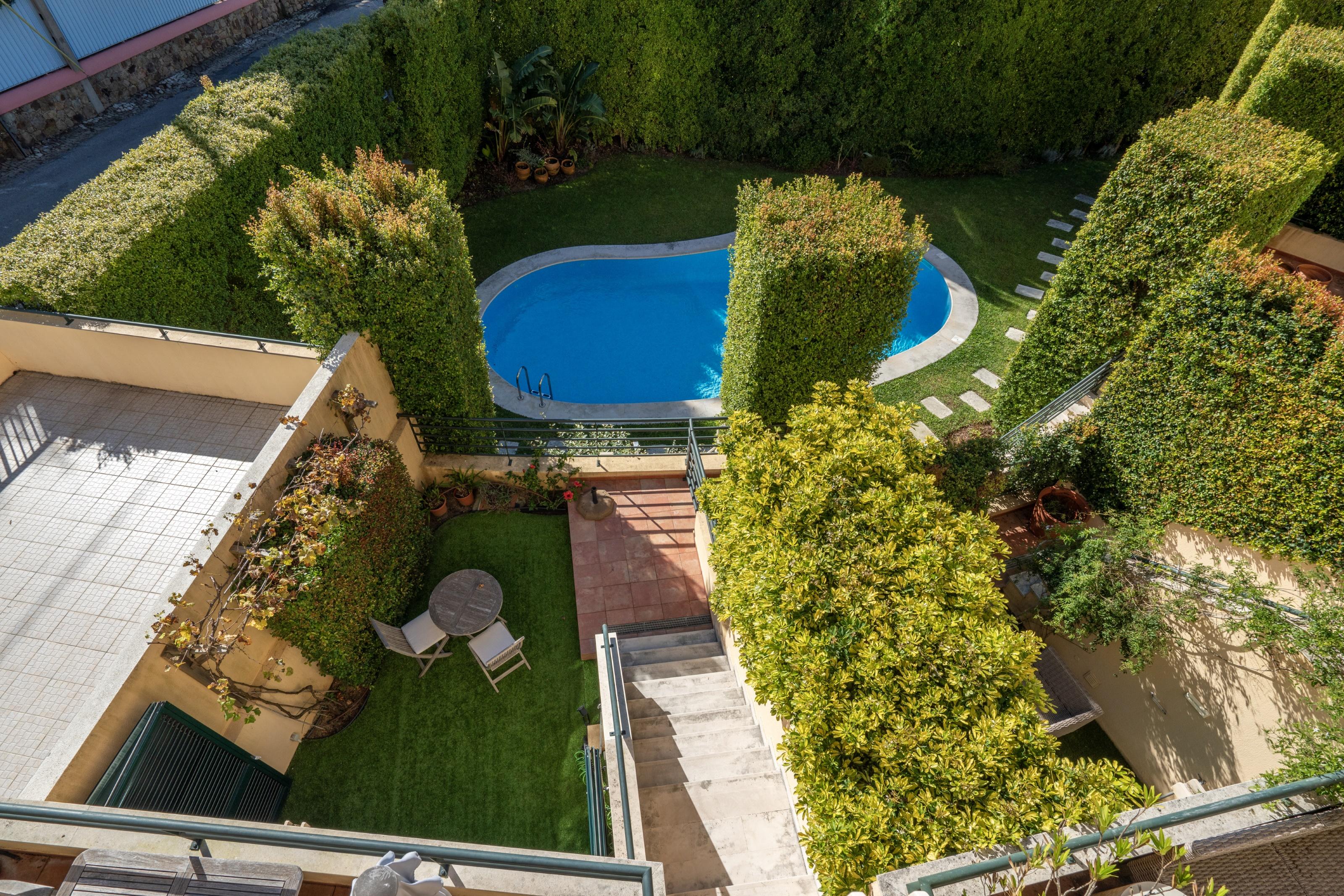 3+1bedroom villa with 272 sqm of gross construction area, with garage and private garden, in a condominium with communal pool and garden in Estoril, Cascais.