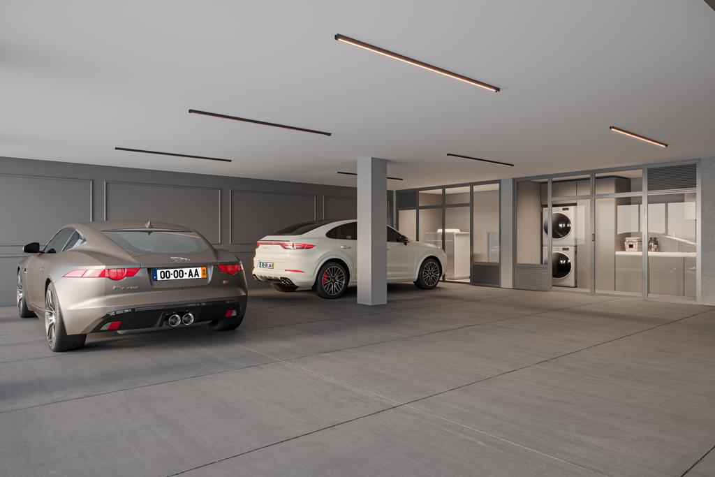 – Garage for 4 cars (92.72 sqm) with three-phase sockets for electric vehicle charging