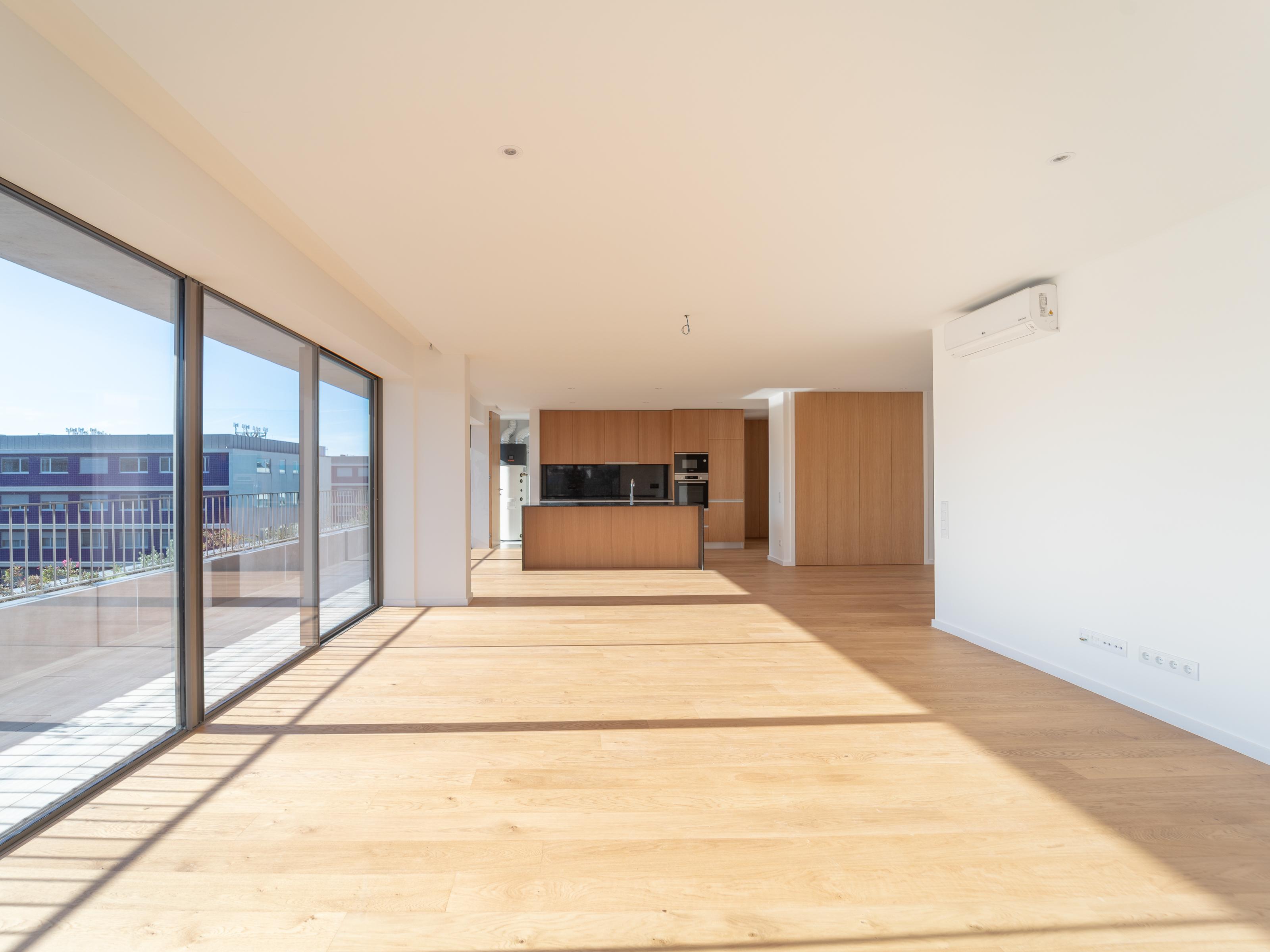 4 bedroom flat, on the top floor, with 177 m2 and an outdoor area of 90 m2, inserted in a new development in Matosinhos Sul, just 600m from the beach.