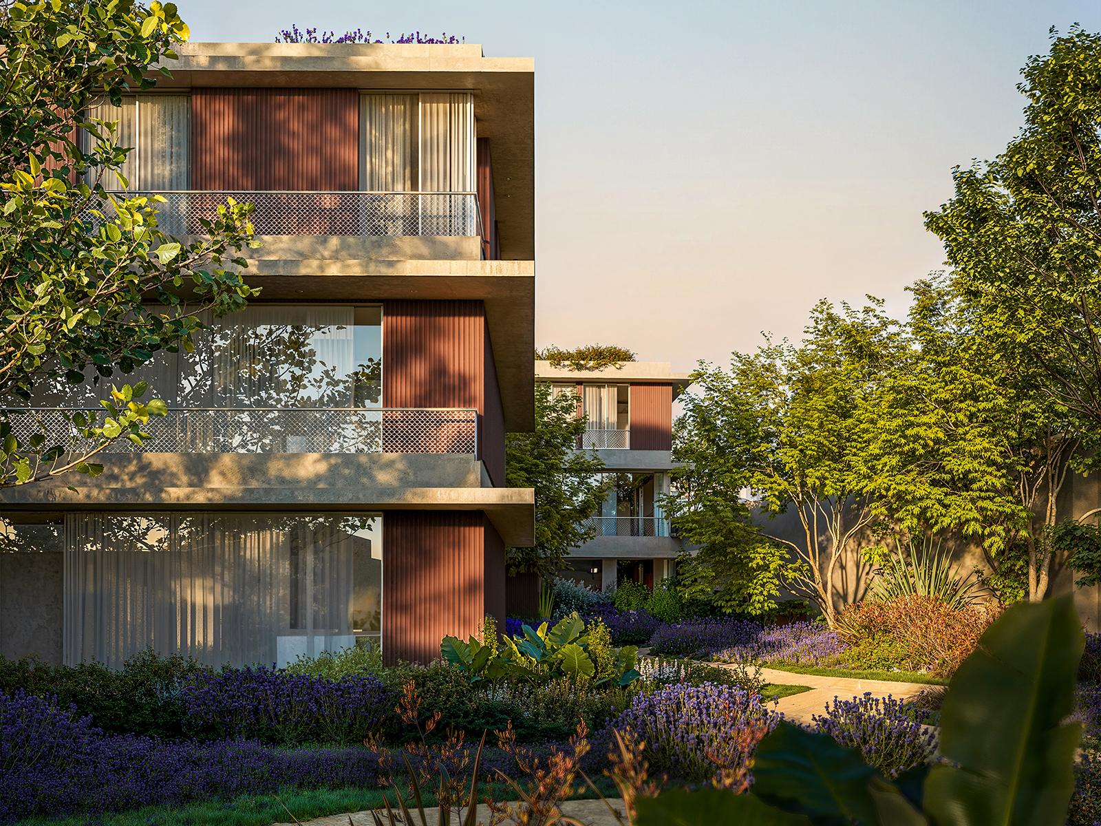 The architectural style of Nomad Eden is contemporary, characterised by clean lines, a distinctive horizontal layout and large outdoor terraces. The design prioritises natural light, vertical gardens throughout the project, ventilation and comfort. The creation of open and airy spaces that enhance the overall living experience, highlighting the indoor and outdoor mix, with floor-to-ceiling windows still maintaining a sense of privacy.