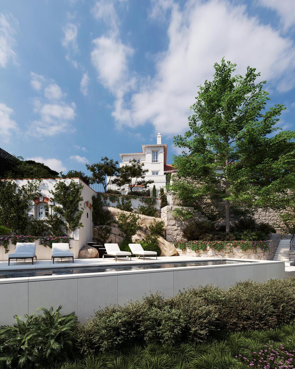 A Masterpiece of Timeless Elegance with Sea Views, the Casa Júlia is a historic 1900 residence designed by Ventura Terra and fully rehabilitated between 2020 and 2025 under the direction of Ateliê José Baganha, with interiors signed by Jacques Grange. Located in the heart of Monte Estoril, this refined home blends architectural heritage with contemporary comfort, offering a high level of sophistication and stunning sea views from the top two floors.