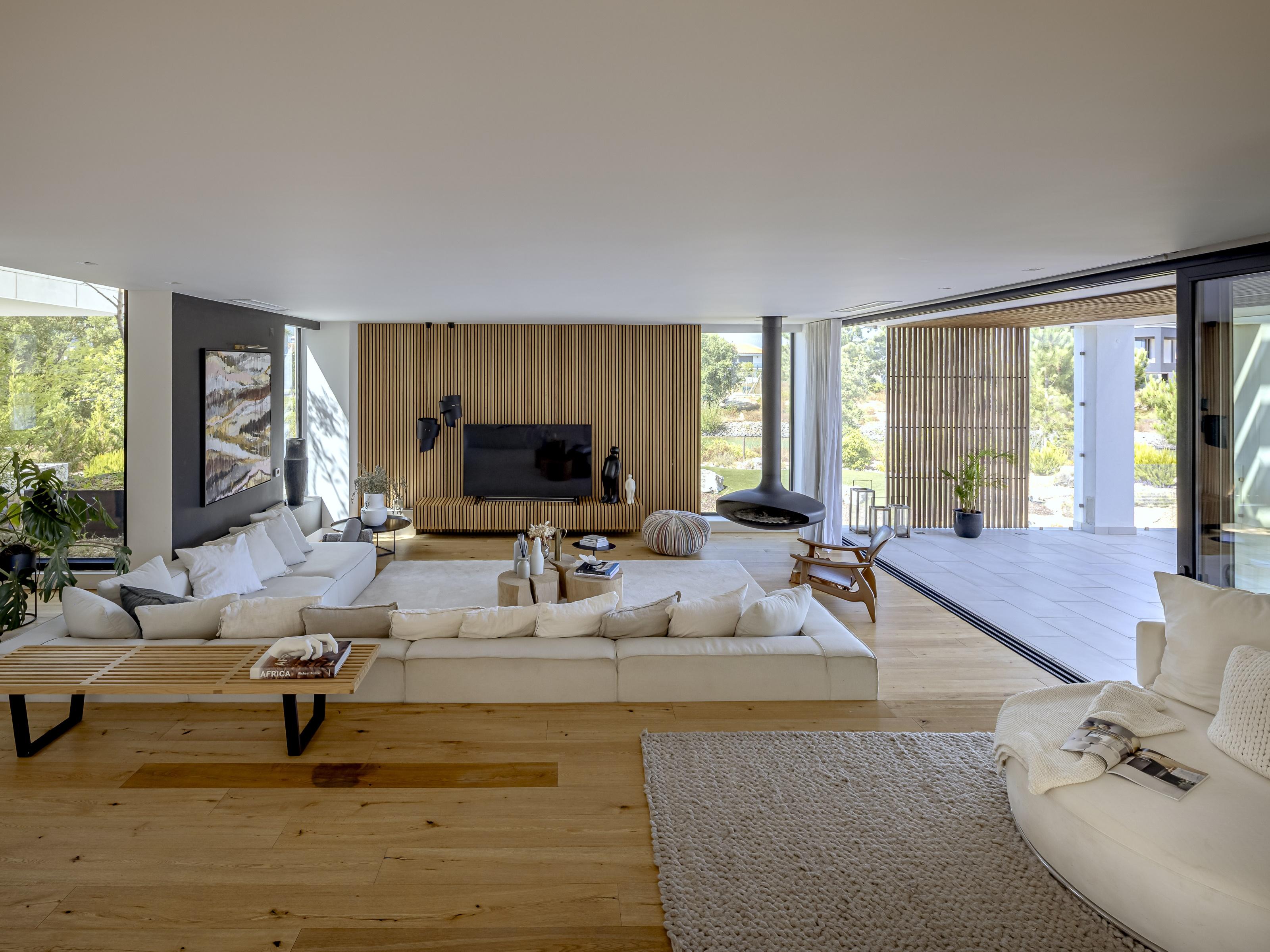 Notable features include an outdoor dining area, infinity pool overlooking the lake, firepit, ethanol fireplace and garden. The villa has underfloor heating throughout, high-quality finishes, kambala iroko wood panelling and rustic oak flooring.