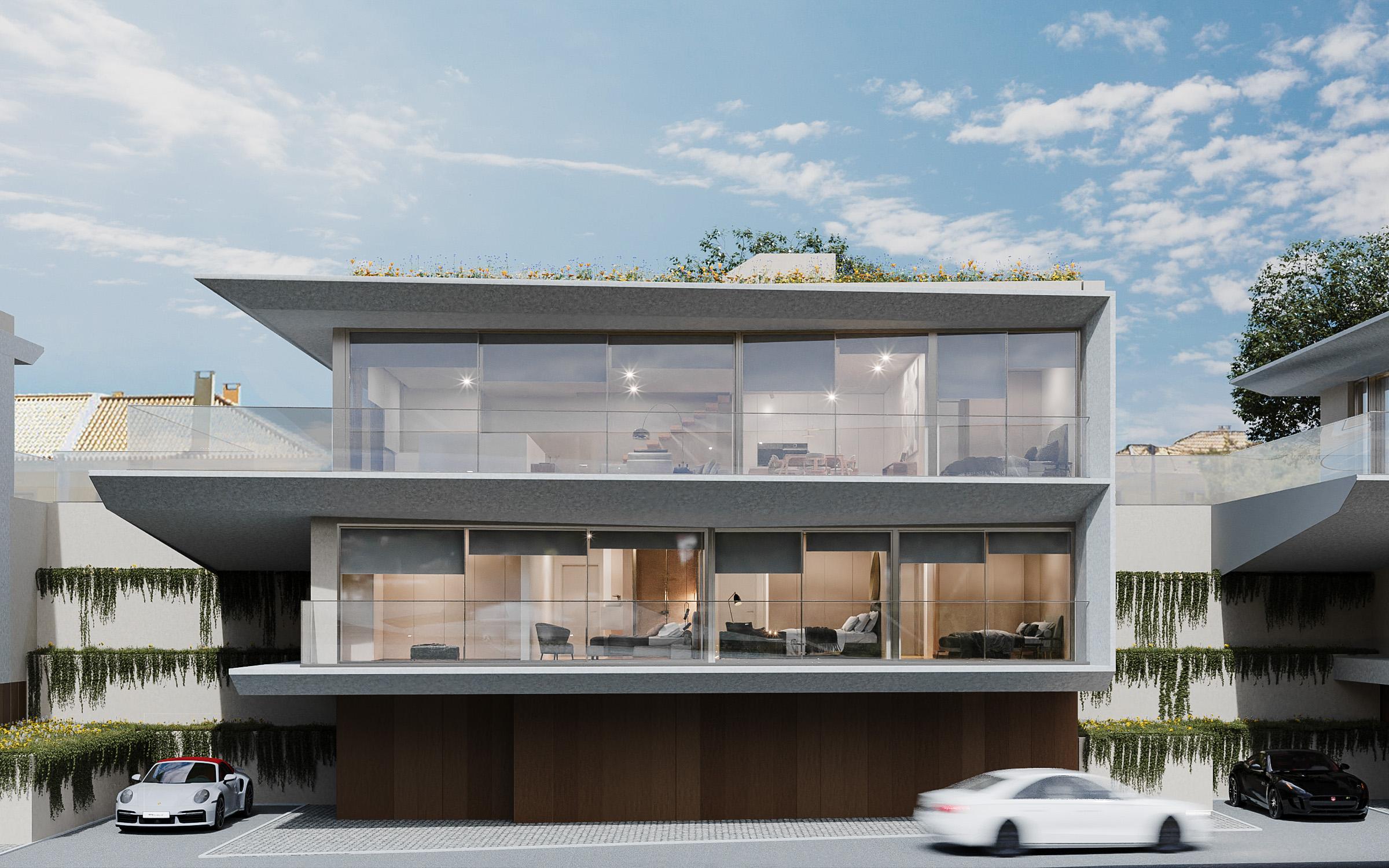 4-bedroom villa with a gross construction area of 424 sqm, under construction, featuring private garden and pool, elevator, garage, with a 900 sqm plot, located within a gated community in Alvide, Cascais.