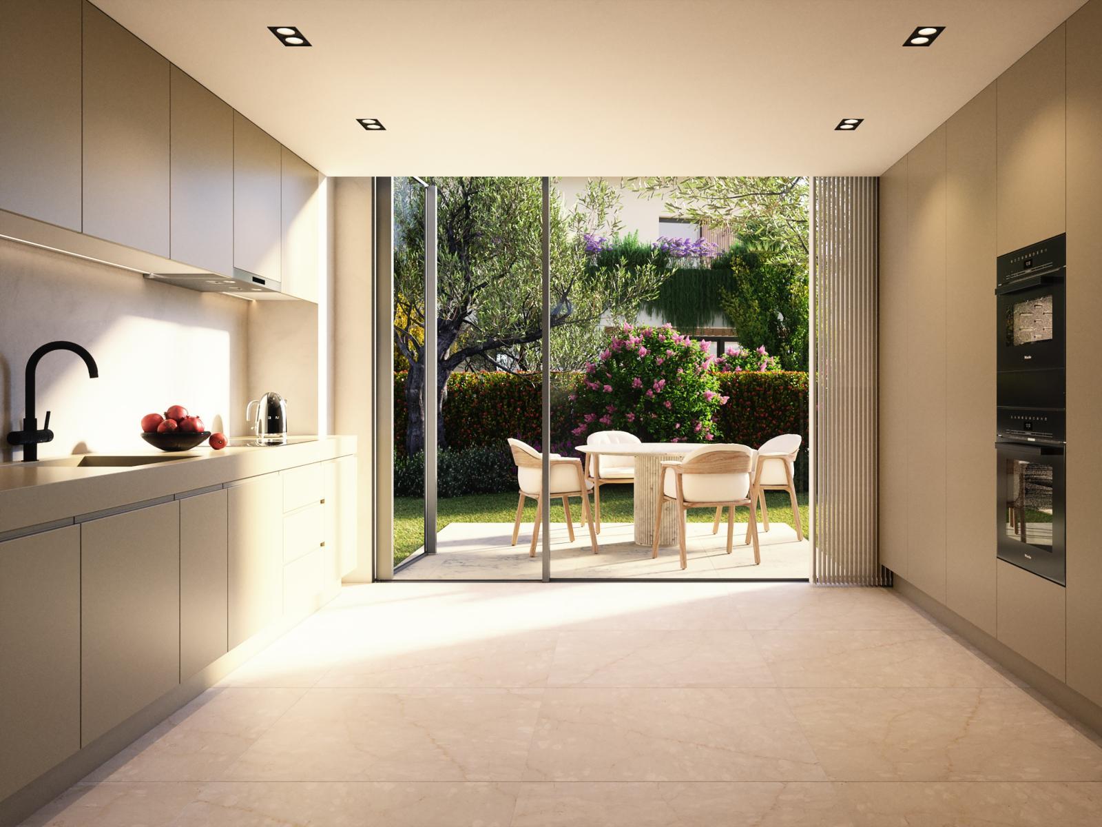 The interiors reflect a balance between elegance and comfort, where natural stones and noble woods create sophisticated textures. The Italian-designed kitchens are equipped with leading brands and the comprehensive home automation system ensures a modern and functional living experience, with excellent finishes in every detail.