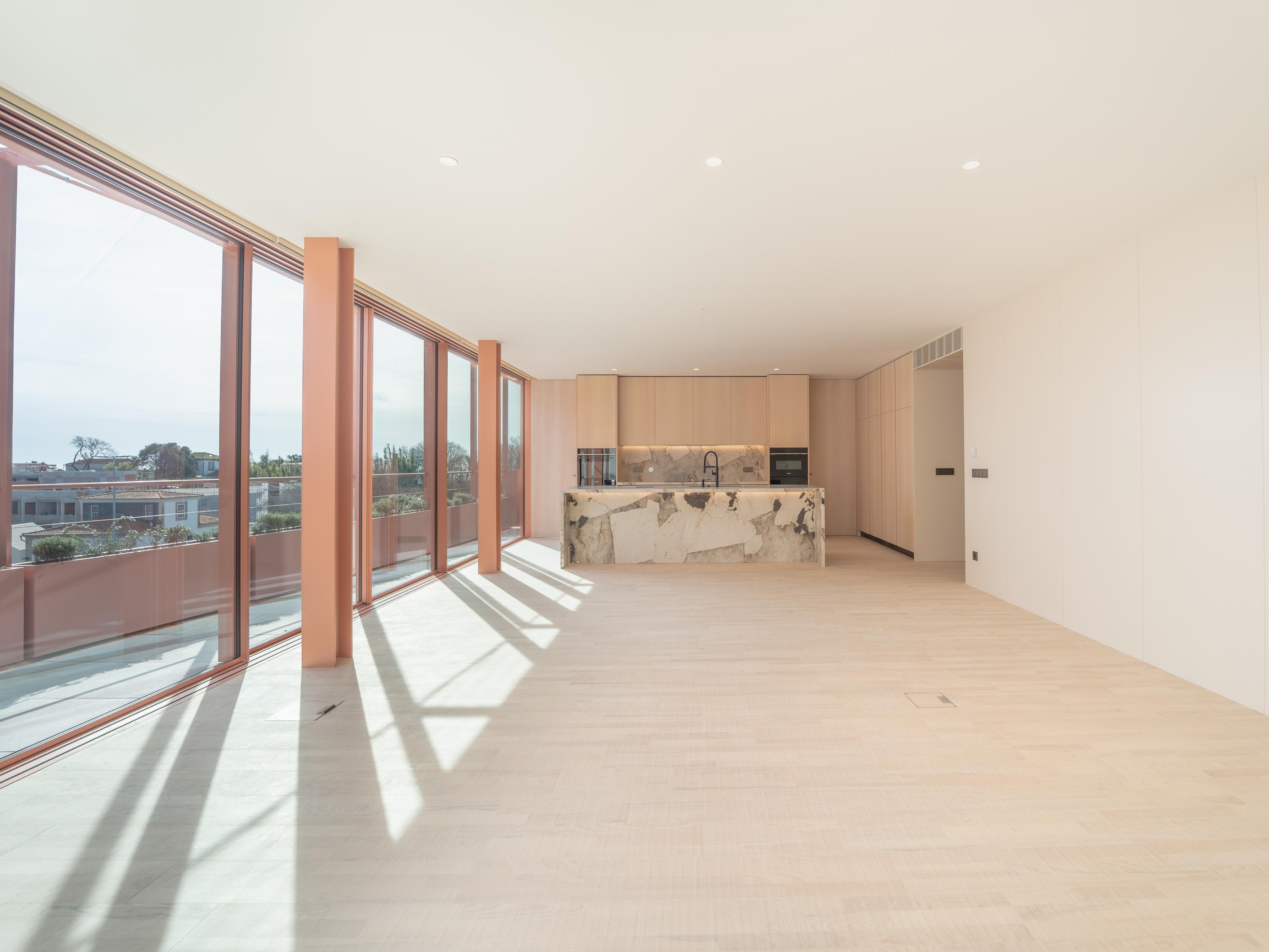 With approximately 233 m² of interior area, this flat is distinguished by its large areas, intelligent organisation and high quality finishes. The social area is particularly prominent, with an open space living room and kitchen with about 61 m², creating a sophisticated, fluid and ideal environment to live and receive with elegance. The modern kitchen is fully equipped and complemented by independent laundry.