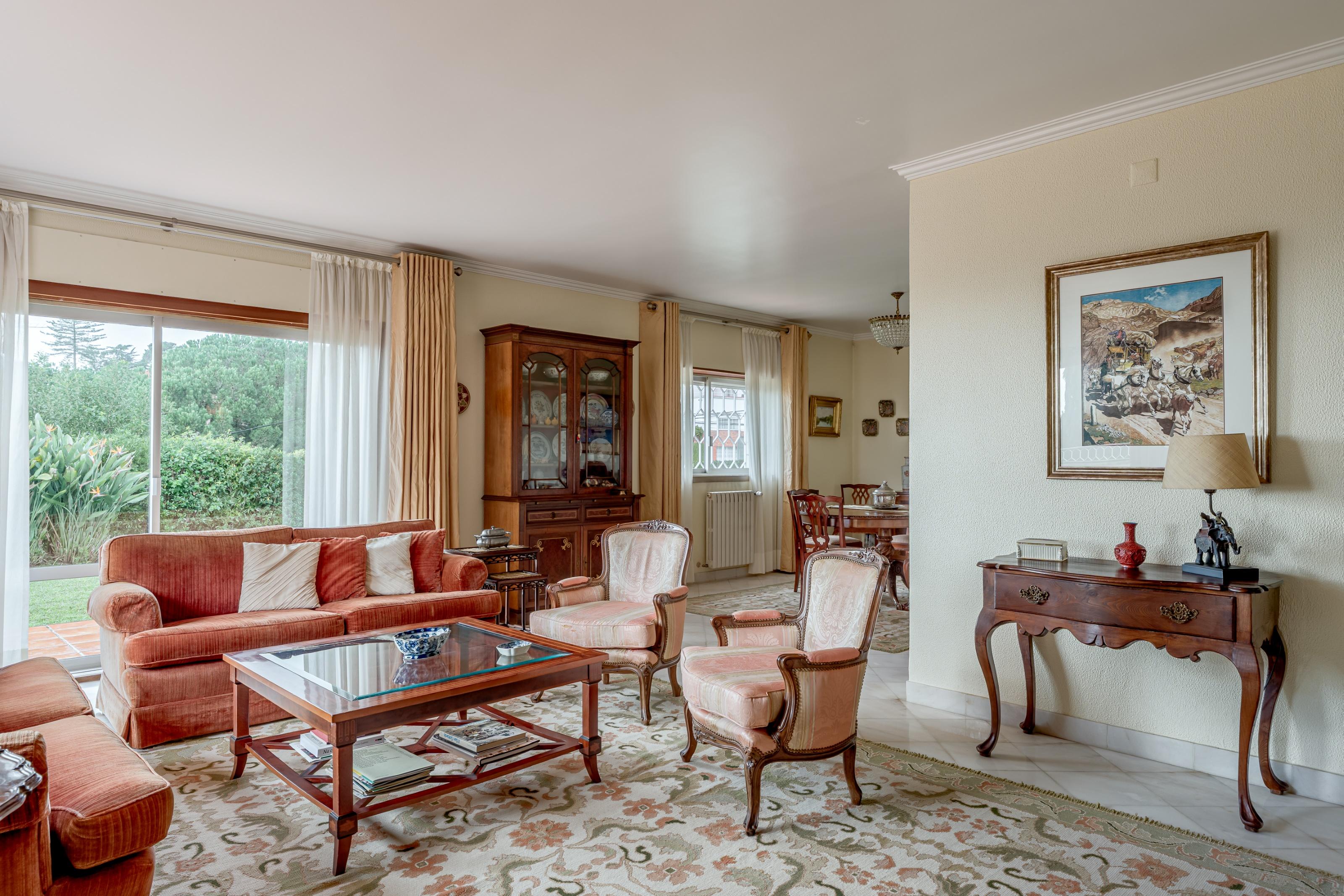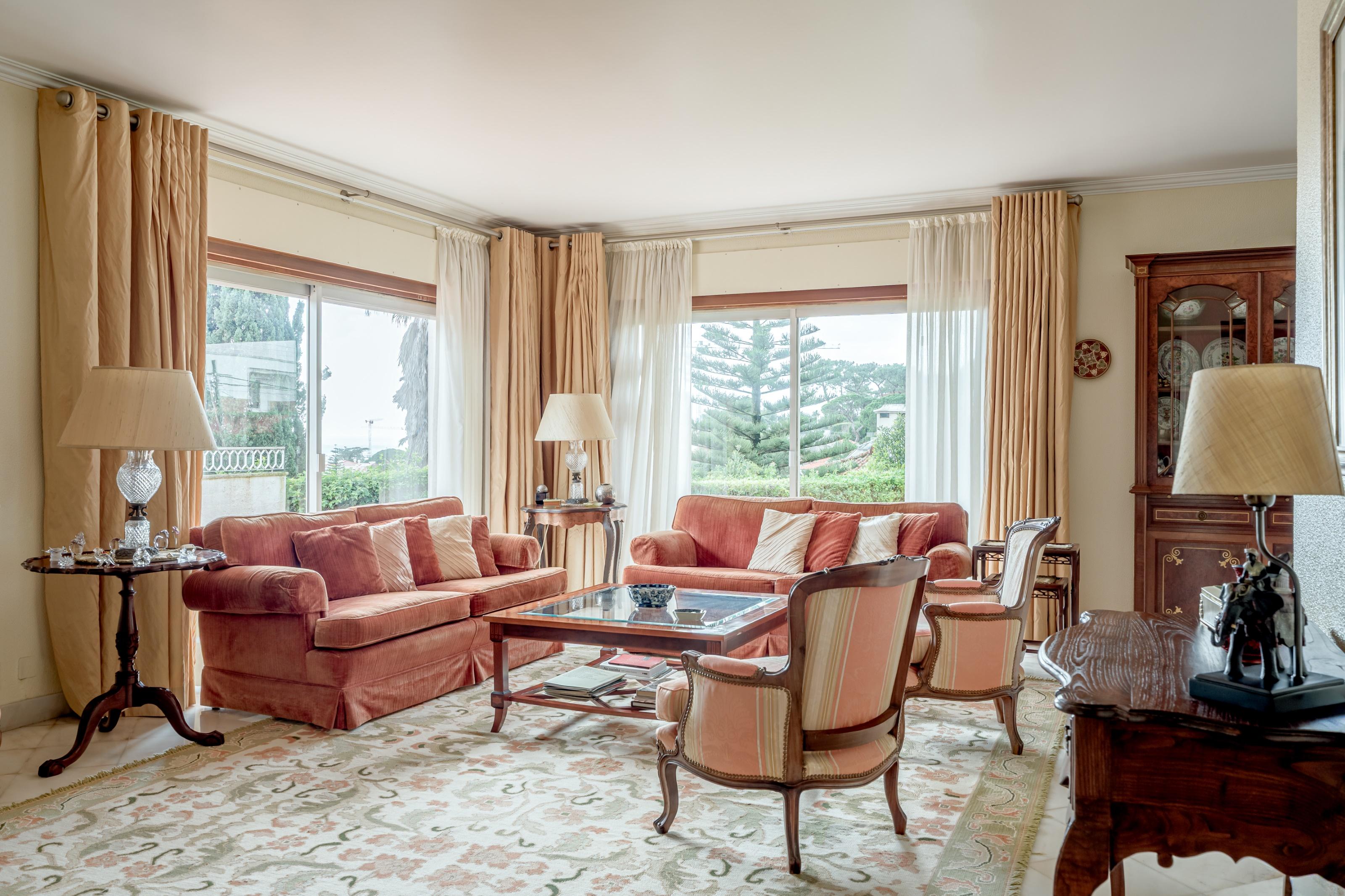 4+1 bedroom villa with 249 sqm of gross building area, garden, sea view and two parking spaces, set on a 1,208 sqm plot, located in the centre of Estoril, Cascais.