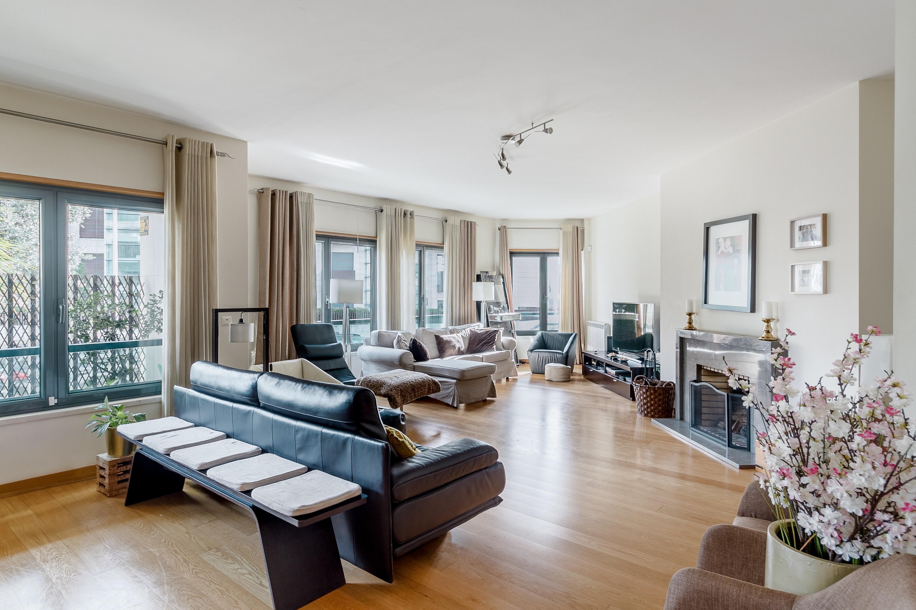 5-bedroom duplex apartment, with 289 sqm of gross private area, terrace, three garage spaces and storage, in Quinta dos Alcoutins, Lisbon.