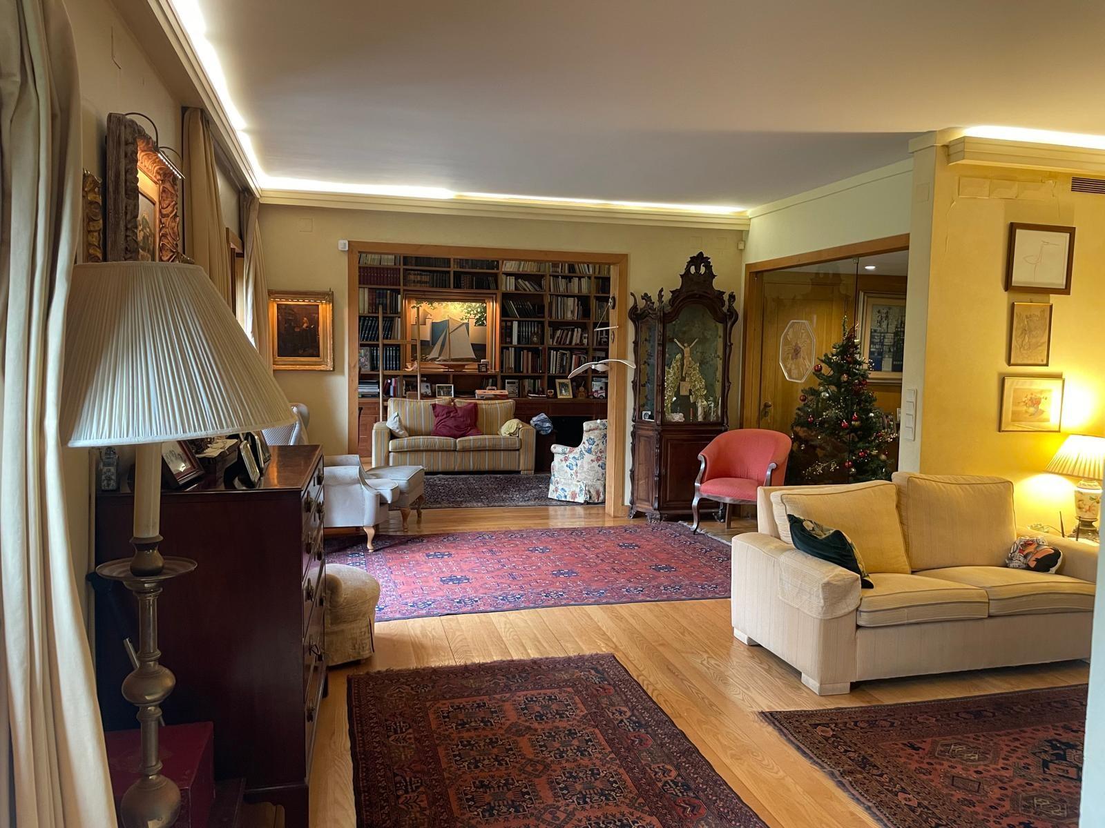 Spread over three floors, it comprises five bedrooms, dining and living room, library, kitchen, two guest bathrooms, a garden of 500 m², and parking for up to four vehicles.