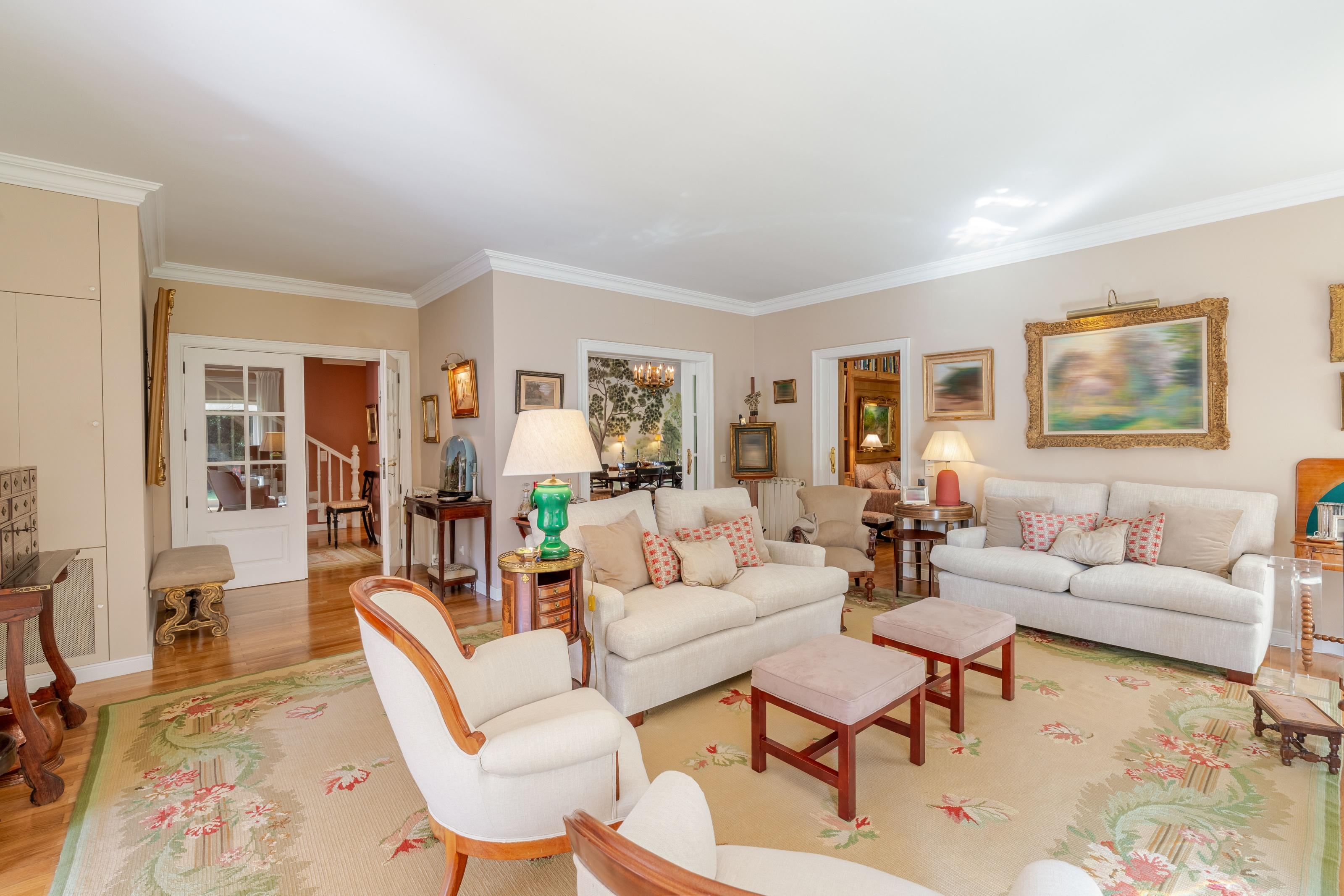 The social area comprises elegant living and dining rooms, both with large glazed openings that establish full communication with the exterior gardens, creating an exceptional sense of luminosity in the interior spaces. The winter garden constitutes one of the property’s most interesting spaces, with a welcoming and informal Mediterranean atmosphere, while the study, more austere with refined paneling and fireplace, transports us to another era. The ground floor includes a guest powder room, fully equipped kitchen, pantry, laundry room, and a bedroom with bathroom. On the first floor, there are four bedrooms, two of which are en-suite, and the attic has been converted into a charming suite. Externally, the property features a garage for two cars and, beneath it, a space with natural light, bathroom, and storage that can be used independently for guests or staff.